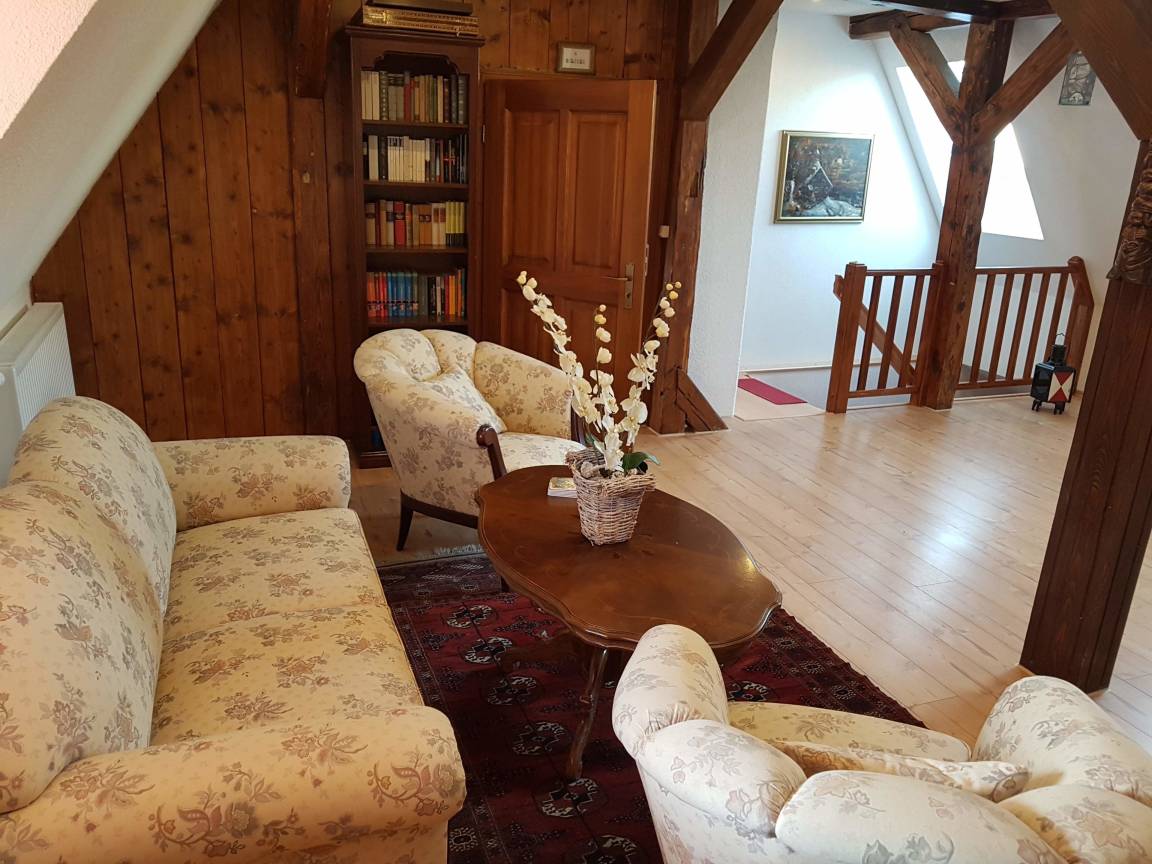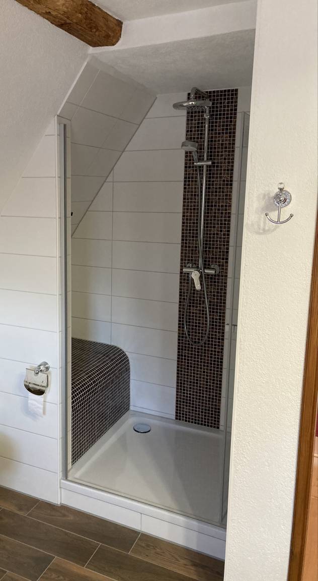Im DG finden Sie neben den drei Schlafräumen mit je einem Doppelbett, ein Bad mit Wanne und Sitzdusche, einen großen Aufenthaltsraum mit gemütlichem Sofa und weichen Sesseln. Der Raum ist ausgestattet mit einem grossen Flachbildschirm TV, DAB-Radio mit USB-Anschluss, CD und Bluetooth- Lautsprechern, Spielen und einer Bibliothek.