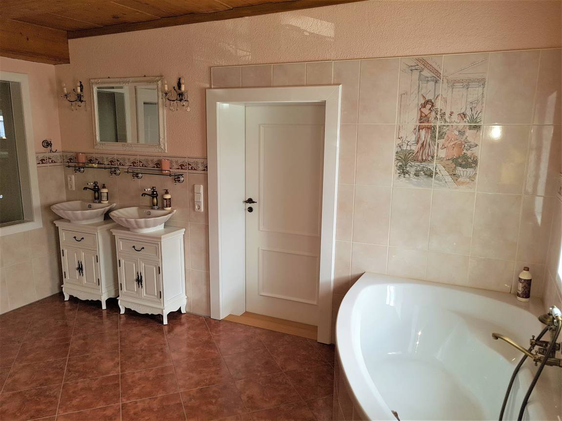 Bei Buchungen von mehr als 6 zahlenden Personen wird auf dieser Etage ein großes Wohn-Schlafzimmer (ca. 33 qm) mit Doppelbett und ein weiteres Bad mit 2 Waschbecken, Badewanne, Oversize- Dusche zur Verfügung gestellt. An dieses Wohn- Schlafzimmer grenzt ein fünftes Zimmer mit Verbindungstüre in dem 2 weitere Personen untergebracht werden können. Dieses fünfte Schlafzimmer ist auch über das dritte Bad zu erreichen.