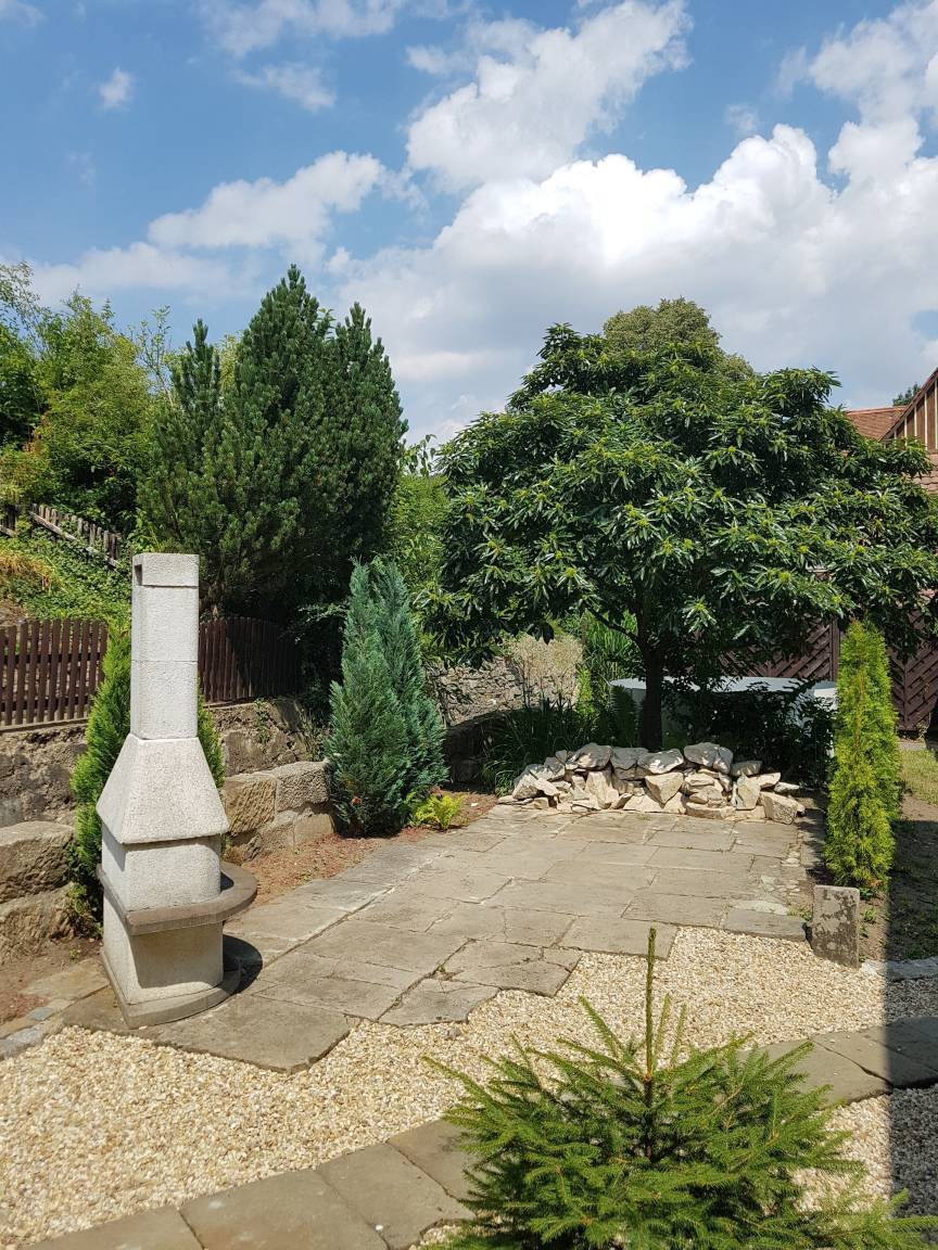 Am Abend sitzen Sie auf den warmen Sandsteinen vor dem Grillkamin oder hören im Schatten des Kastanienbaumes dem Plätschern des Baches zu.
