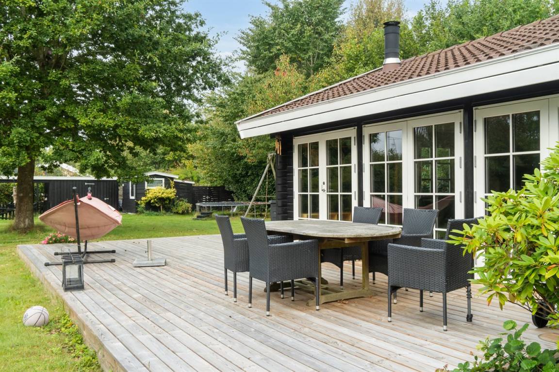 Schönes Ferienhaus mit Gästehaus in Udsholt Strand. Gemütliches Ferienhaus im attraktiven Gebiet Udsholt Strand – ganz in der Nähe vom Wasser. Das Haus hat eine helle Wohnküche, ein Wohnzimmer mit Kaminofen und direkten Zugang zur sonnigen Terrasse mit Gartenmöbeln und Grill. Das Etagenbett im Haupthaus ist am besten für Kinder geeignet.