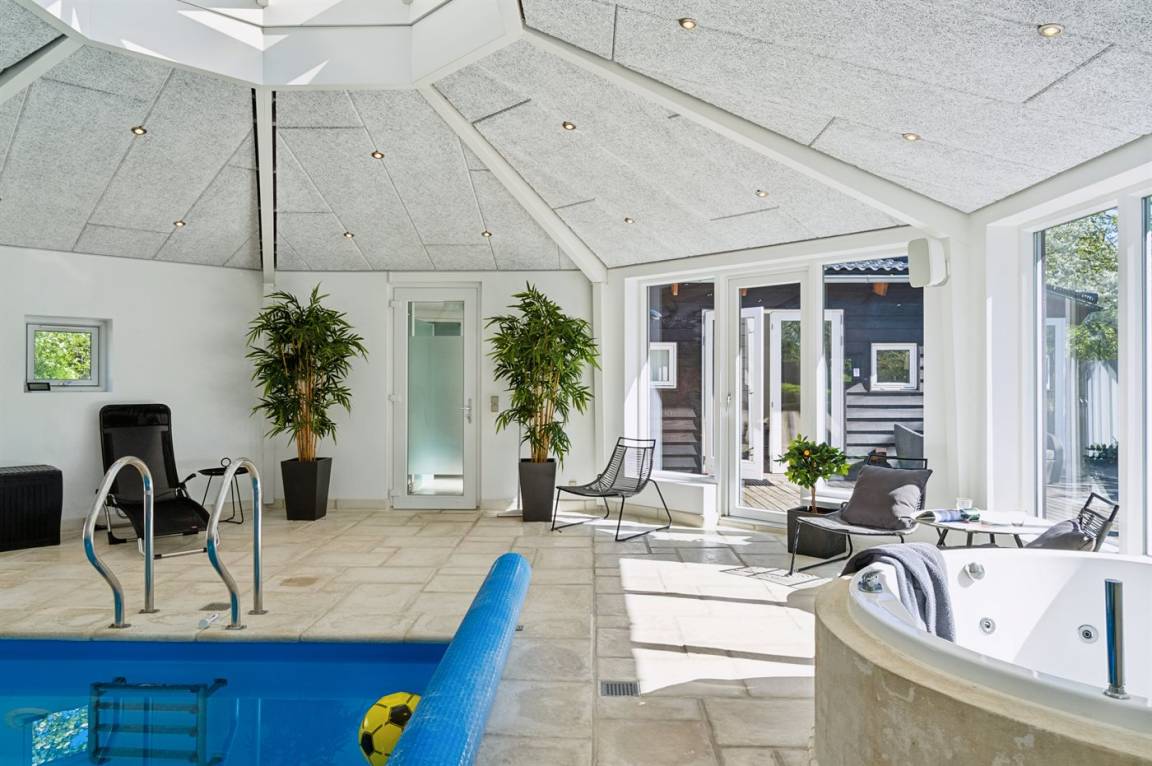 Ein großes, ganzjährig isoliertes Ferienhaus. Das Haus, das von einem Architekten gezeichnet ist, verfügt über eine große Swimmingpool-Abteilung, einen Whirlpool für 4 Personen und Loungemöbel für maximale Gemütlichkeit mit der ganzen Familie.