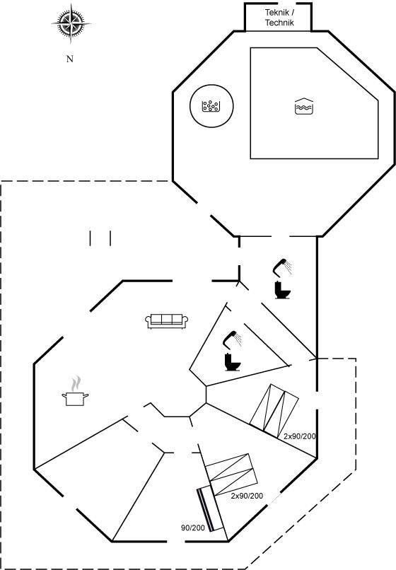 DraußenDie Ferienunterkunft liegt auf einem 1231 m² großen Gartengrundstück. Die Entfernung zum Meer beträgt 400 m. Die nächste Einkaufsmöglichkeit liegt 2300 m entfernt. Es steht ein offenes Terrassenareal zur Verfügung. Kinderspielhaus. Trampolin.Lagerfeuerstelle. Gasgrill steht zur Verfügung. Parkplatz auf dem Grundstück.