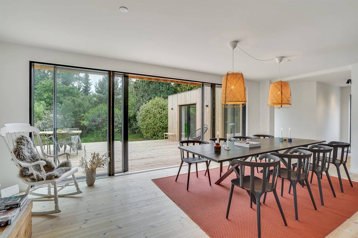 Komplett renoviertes, hochwertiges Ferienhaus, in dem Sie die frische Luft auf den großen Terrassen genießen können. Vom offenen Gemeinschaftsbereich, bestehend aus einer modernen Küche, einem Essbereich und einem Wohnbereich, und vom größten der drei Schlafzimmer gelangen Sie auf den großen, geschützten Terrassenbereich. Alle Schlafzimmer sind mit Doppelbetten ausgestattet. Außerdem ist ein geschlossener Terrassenbereich mit Außenduschen vorhanden. Den geschlossenen Terrassenbereich erreichen Sie unter anderem vom Badezimmer, das mit ansprechenden Materialien gestaltet wurde und mit Fußbodenheizung ausgestattet ist. Der Waschraum ist mit einem Waschtrockner ausgestattet. Das Ferienhaus liegt in Græsted, nur 1000 m von einem schönen Badestrand entfernt. Mit dem Auto erreichen Sie viele idyllische Urlaubsorte wie Tisvildeleje, Gilleleje und Hornbæk sowie das einzigartige Naturgebiet Heatherhill.