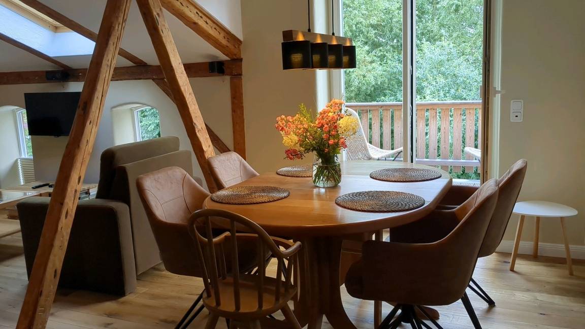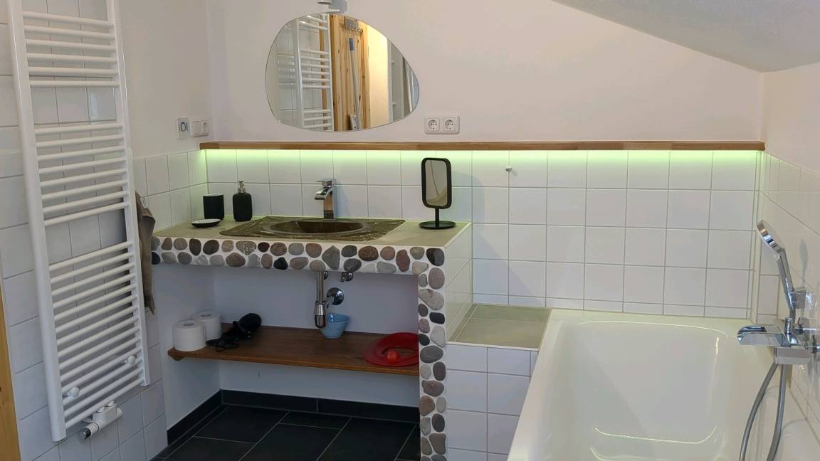 Im Winter 2024 ist in den Räumen der ehemaligen Schule für Kundalini Yoga (2012 bis 2021) nach der aufwändigen Renovierung eine edle Ferienwohnung mit 2,80m Familienbett, Lehmputz, Eichendielen und Badewanne entstanden.
