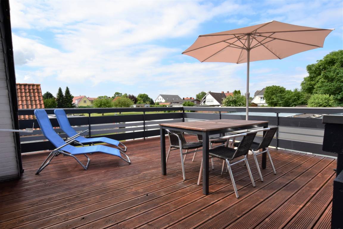 Wir wünschen Ihnen schon jetzt einen schönen Urlaub in Grube an der Ostsee. Hier erwartet Sie auf ca. 60 m² eine schick eingerichtete Wohnung mit 1 Schlafzimmer, einem Duschbad, einer Küche mit Essbereich, einem Wohnzimmer und Zugang zur ca. 25 m² großen Dachterrasse für bis zu 3 Personen (incl. Kleinkind).