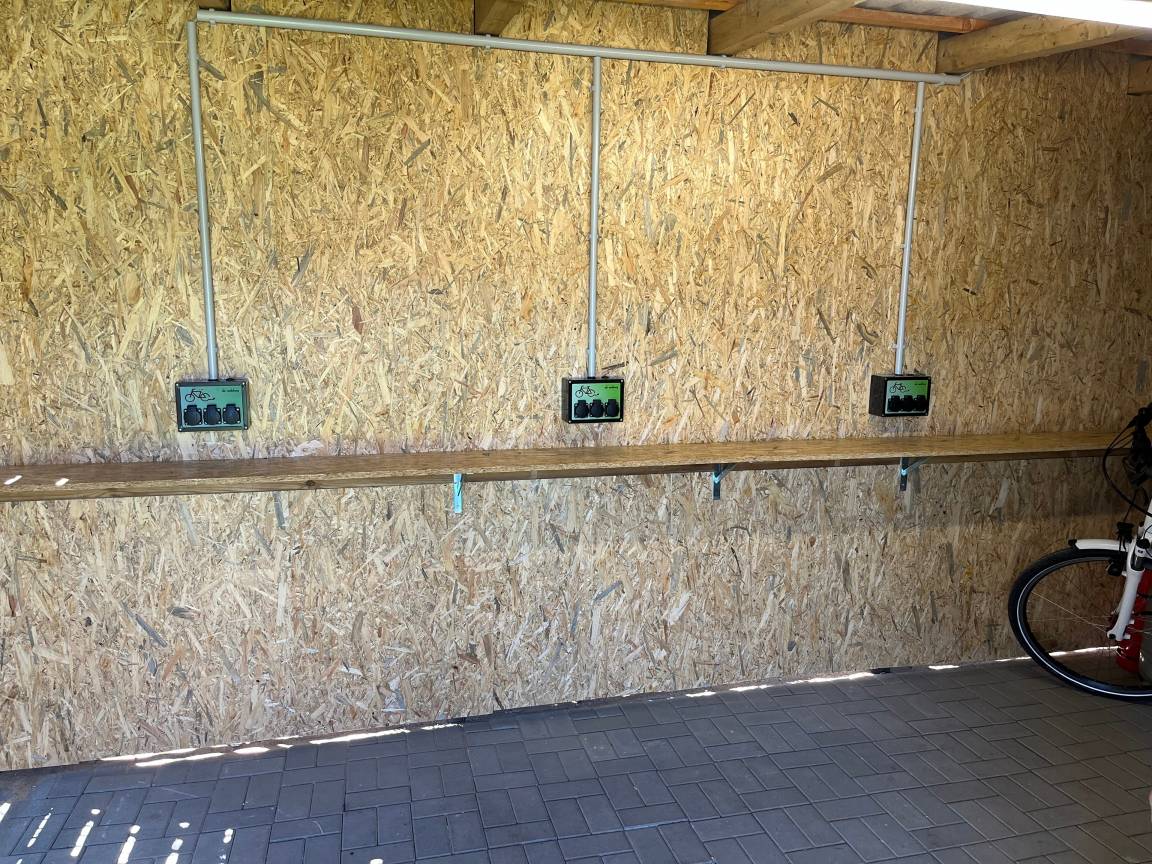 -Die Fahrräder können im Fahrradschuppen (mit Steckdosen) im Garten abgestellt werden.