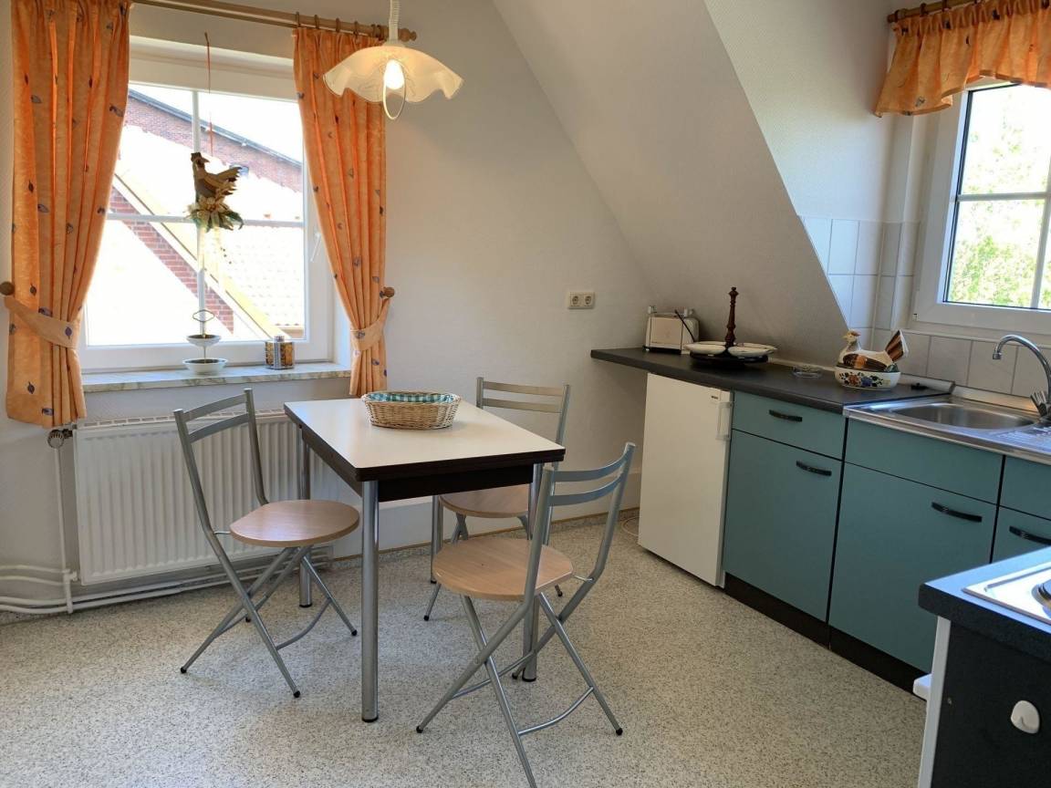 Die „Wiesenblick" Ferienwohnung befindet sich im 1. Obergeschoss eines Einfamilienhauses in Grube, nur etwa 3 km vom Dahmer Sandstrand entfernt. Die helle und gemütliche 45 m² große Unterkunft bietet Platz für bis zu 2 Personen und besteht aus zwei Zimmern. Das Wohnzimmer ist mit einem Sofa und einem TV ausgestattet, während die Küche über einen Herd, einen Backofen und einen Essplatz für zwei Personen verfügt. Das Schlafzimmer bietet ein Doppelbett (2 Einzelmatratzen à 90x200 cm) sowie einen Kleiderschrank. Im Badezimmer sind Dusche und WC vorhanden. Bettwäsche und Laken müssen, sofern nicht gebucht, mitgebracht werden. Darüber hinaus gibt es einen PKW-Stellplatz am Haus, der nach Schlüsselübergabe genutzt werden kann. Ein kleiner Hund kann gegen Gebühr mitgebracht werden. WLAN ist ebenfalls verfügbar.