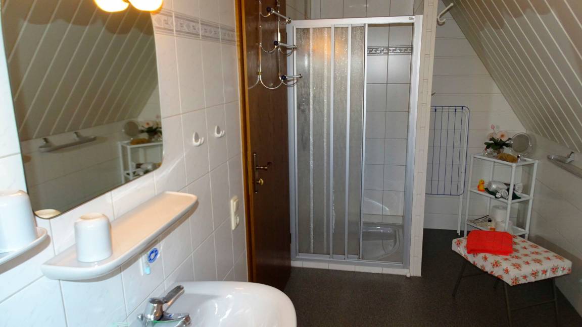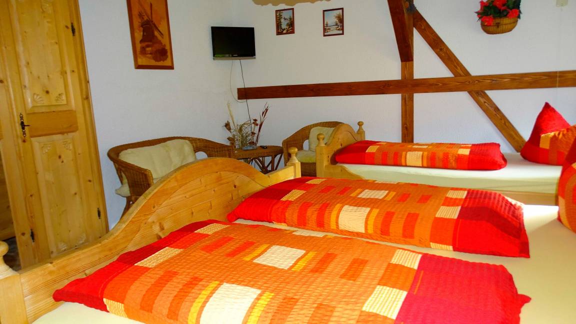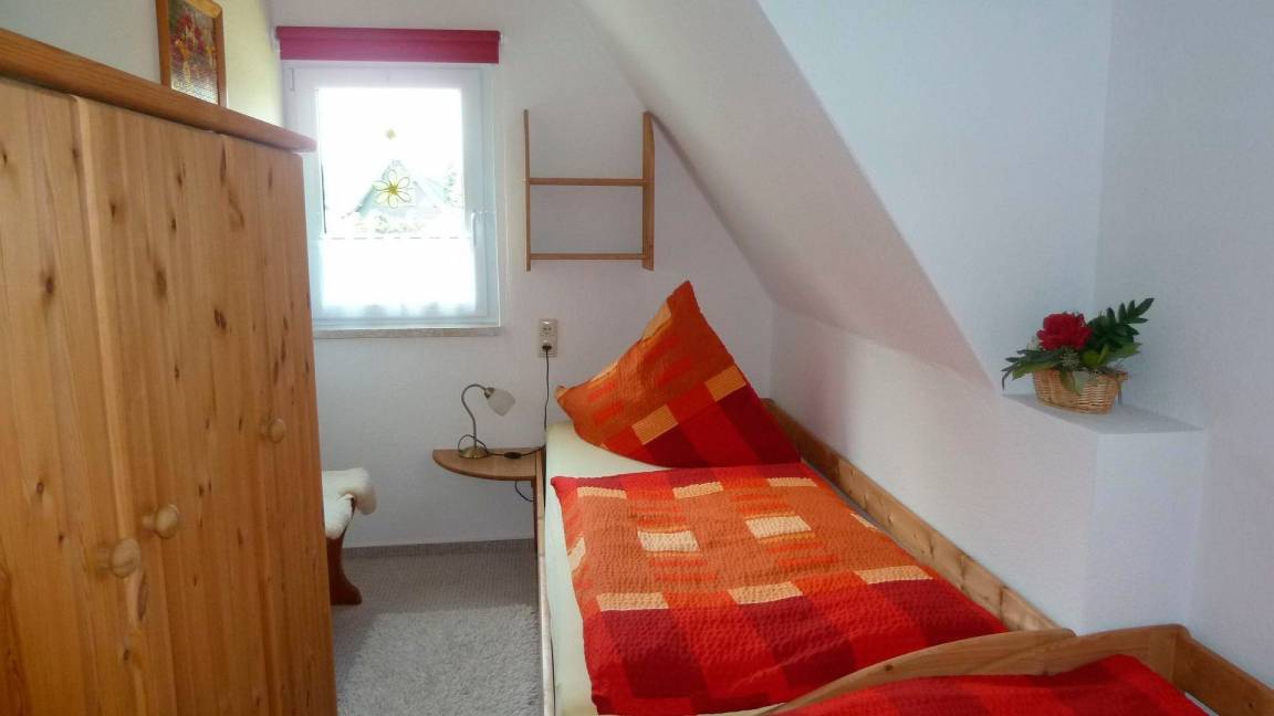 Unsere helle und freundliche Ferienwohnung verfügt über 3 Schlafzimmer. Ein Schlafzimmer mit Doppelbett und Einzelbett. Im zweiten Schlafzimmer finden Sie zwei Einzelbetten. Im Erdgeschoss habe wir für Sie ein Einzelzimmer mit separater Toilette eingerichtet. Ihre Betten sind bei Anreise natürlich bezogen, Dusch- und Handtücher sind vorhanden.
