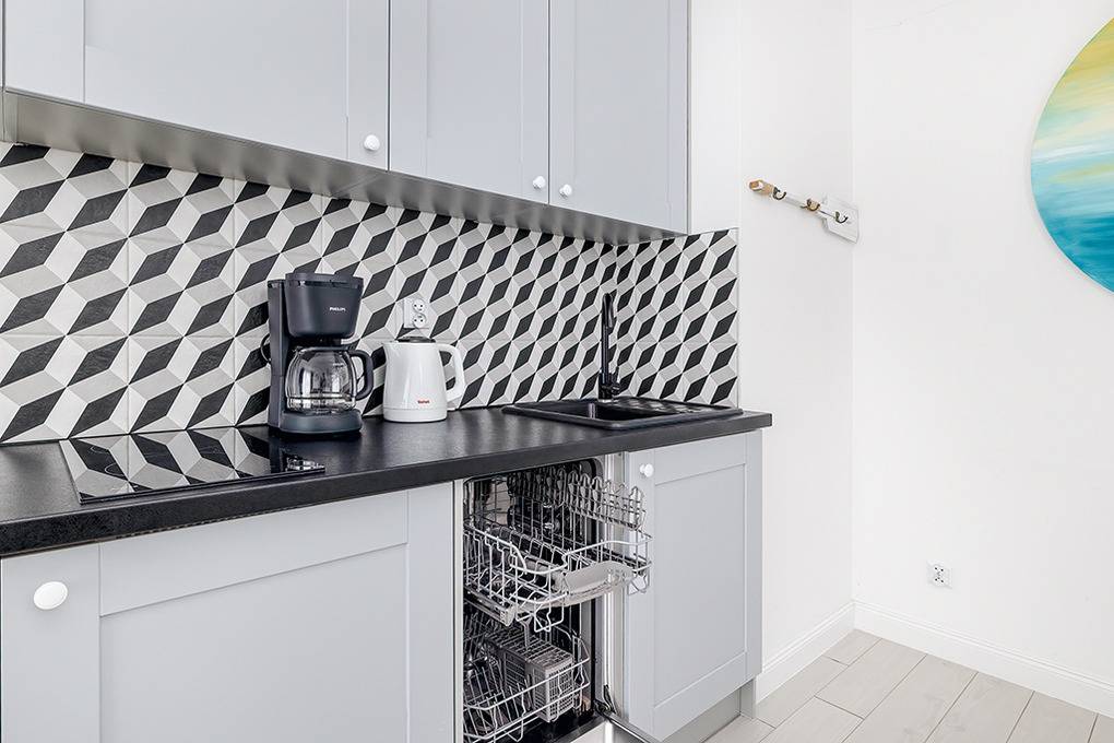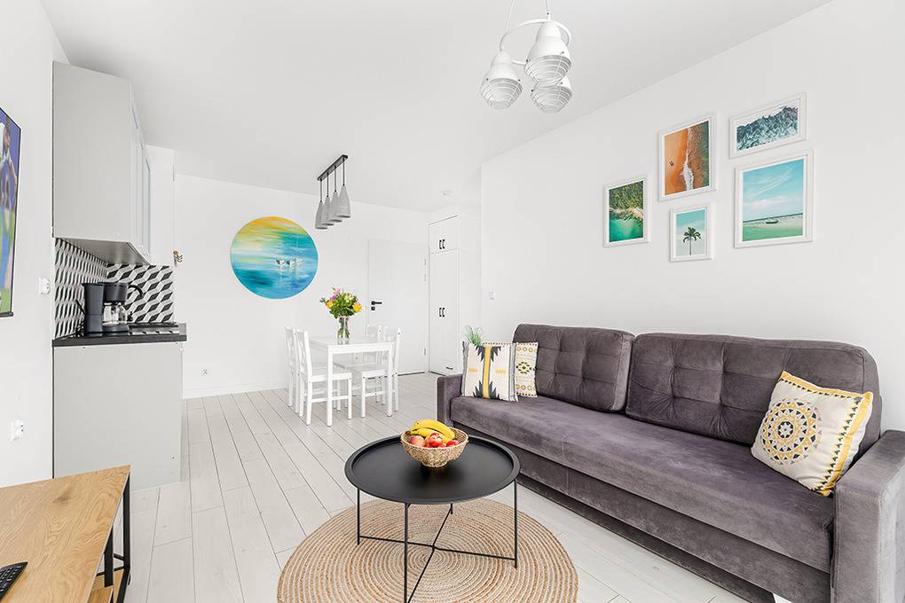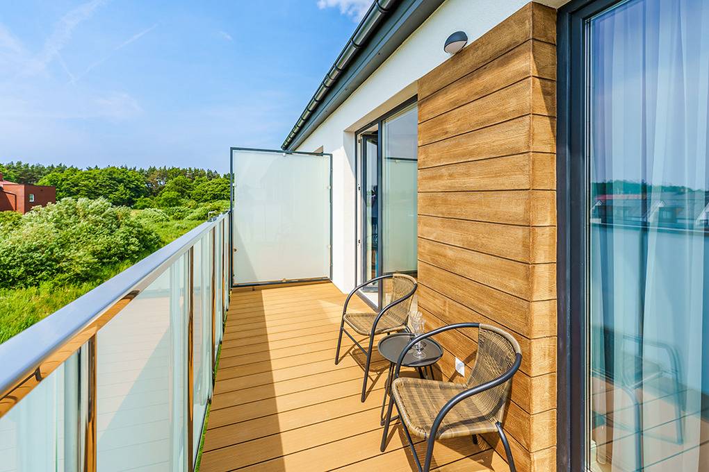PL 41.22 Wohnung 1-4 Pers.: Niveauvoll eingerichtete 2-Zimmerwohnung mit 39 qm Wohnfläche, 2. Etage. Schöner, heller Wohn-/Essraum mit bodentiefer Fensterfront, Klappcouch (Schlafsofa 2 Pers.), SMART-TV, Esstisch, Küchenzeile (2 Pl.-Induktionsfeld, Spülmaschine). Doppelzimmer. Bad/WC. Balkon mit Sitzmöbeln.