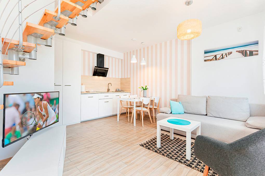 Nebenkosten Kurtaxe. Bettwäsche vorhanden. Handtücher mitzubringen. Zusätzliche Leistungen Kostenloser Internetzugang über W-Lan. 1 Pkw-Stellplatz 20 Zl./Tag nur im Zeitraum 01.07.26 - 31.08.26, außerhalb des Zeitraumes inklusive im Preis. Kaution 100 €. Kinder Babybett/Hochstuhl nur innerhalb der maximalen Personenzahl, jeweils ohne Berechnung (Bestellung). Haustier 60 Zl./Aufenthalt, max. 1 Hund (Anmeldung).Räume & Aufteilung