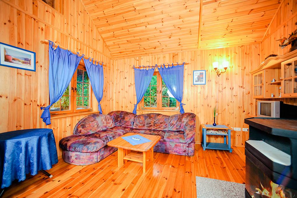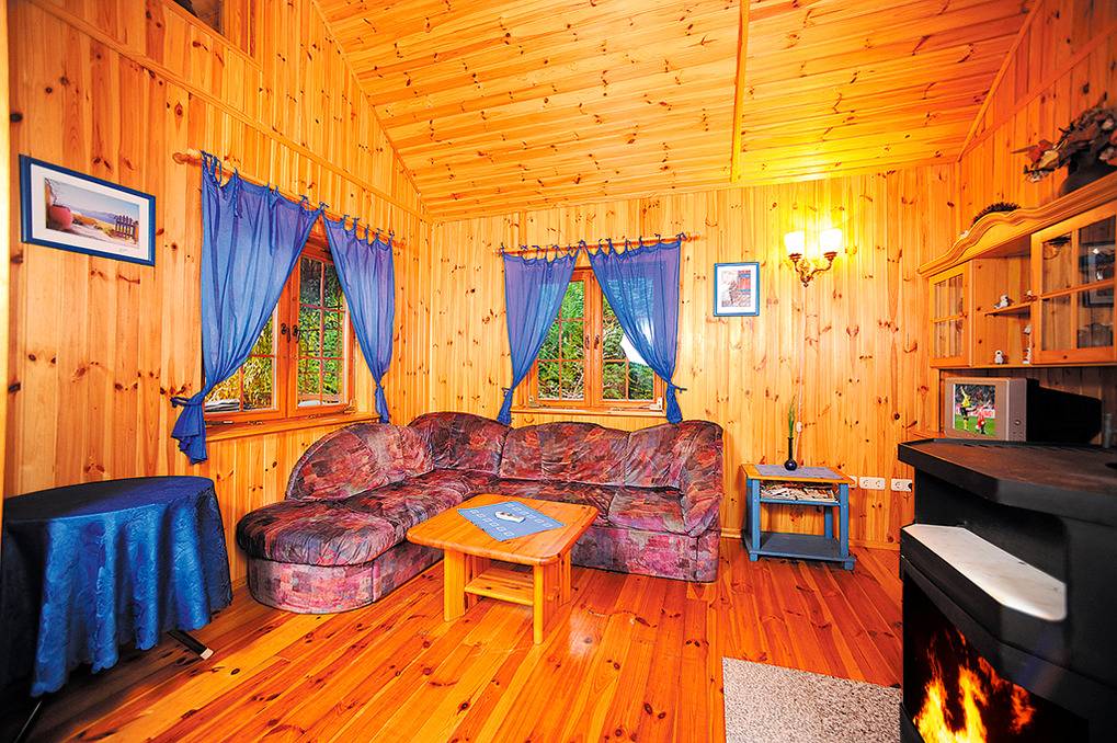 Haus: Holzblockhaus mit Kaminofen auf einem großem Gartengrundstück (1400 qm). Wohnliche Einrichtung, holzvertäfelung im ganzen Haus. E-Heizung, Warmwasser über Durchlauferhitzer. Großer Garten mit Lagerfeuerplatz und Laube mit Tisch, Grill. Parkplatz auf umzäuntem Grundstück.
