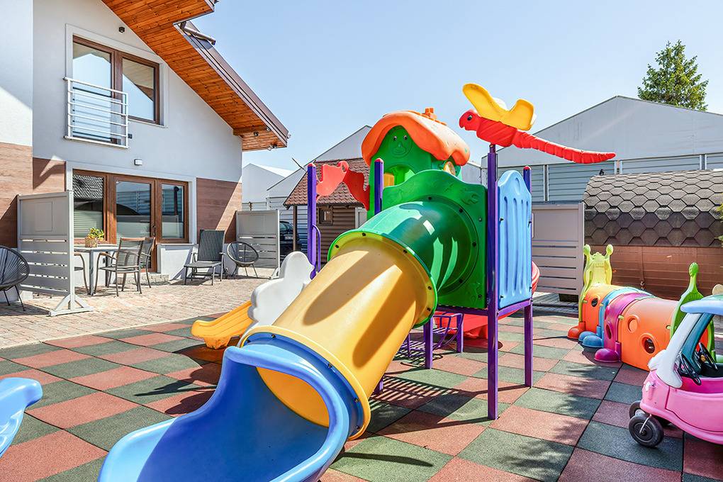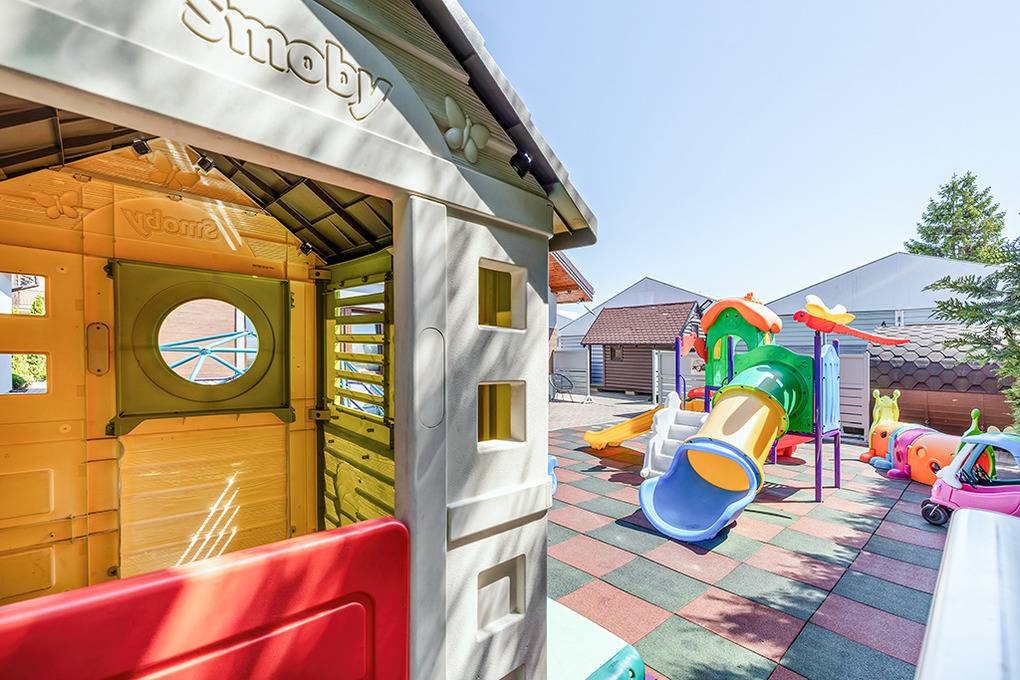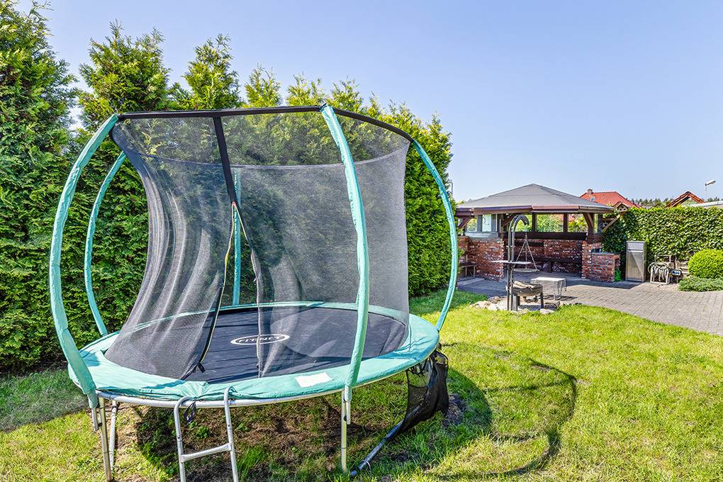 In der Anlage: separates Saunahäuschen und Hot Tub. Kinderspielplatz mit Trampolin, Schaukel, Rutsche, Sandkasten zur gemeinschaftlichen Nutzung. 1 Pkw-Stellplatz/Fewo am Haus.
