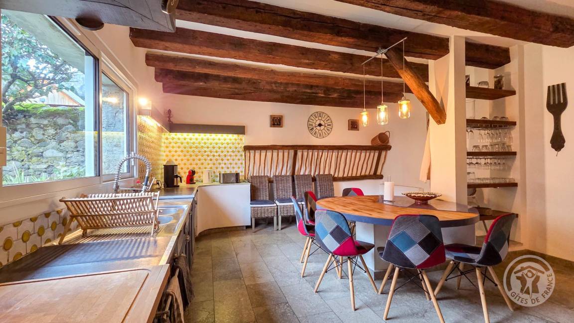 „Loué pour un long week-end pour des retrouvailles d'amis d'école. Six couples. Appréciable: Une chambre avec lit double par couple. Très belle salle commune avec une belle hauteur sous plafond. Belle cuisine aussi. On a aussi dîné dehors en utilisant le barbecue à gaz. La piscine est petite mais permet de se détendre après une randonnée. Le gîte est bien équipé. Je recommande de prendre le forfait ménage. Au total, c'est un budget mais pour d'excellentes prestations. Pour finir, l'accueil par Eric est très bien, avec de bons conseils sur les activités et restaurants autour. Il s'est rendu disponible avant le séjour pour m'aider à préparer les activités.“