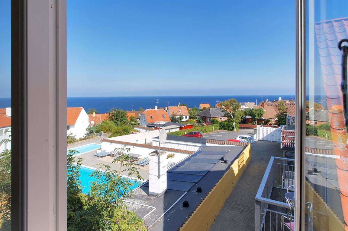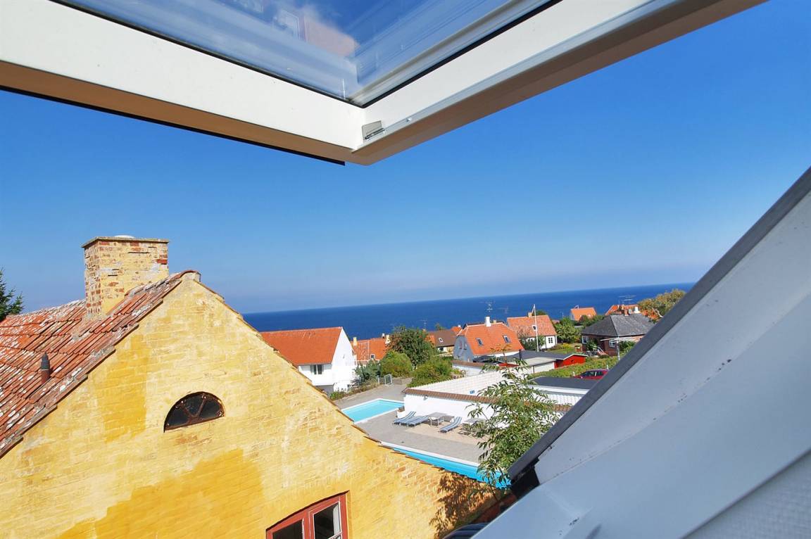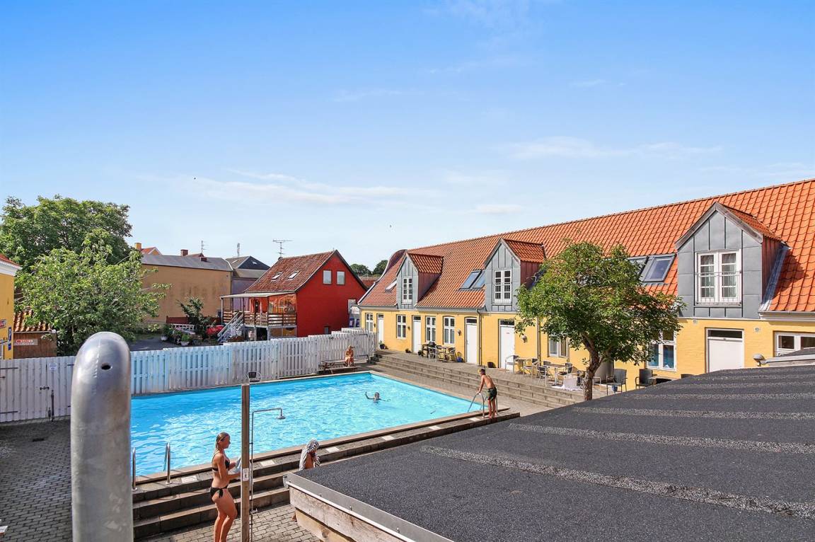 Diese nette, 2-stöckige Ferienwohnung mit Meeresblick liegt im 1. und 2. Stock in dem ehemaligen Kaufmannshof "Gudhjem Købmandsgård" – mitten im charmanten Fischerdorf Gudhjem. Zur Wohnung gehört ein gemeinsamer Sonnenhof mit gemeinsamen Außenswimmingpool. Der Pool ist nicht beheizt und kann vom 1. Juni bis zum 30 September benutzt werden. In der nahe gelegenen Schwimmhalle "Gudhjem-Svømmehal" ist es möglich, die Sauna zu benutzen.