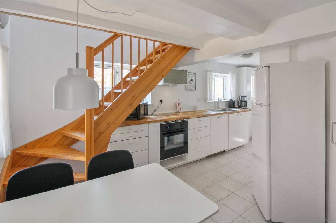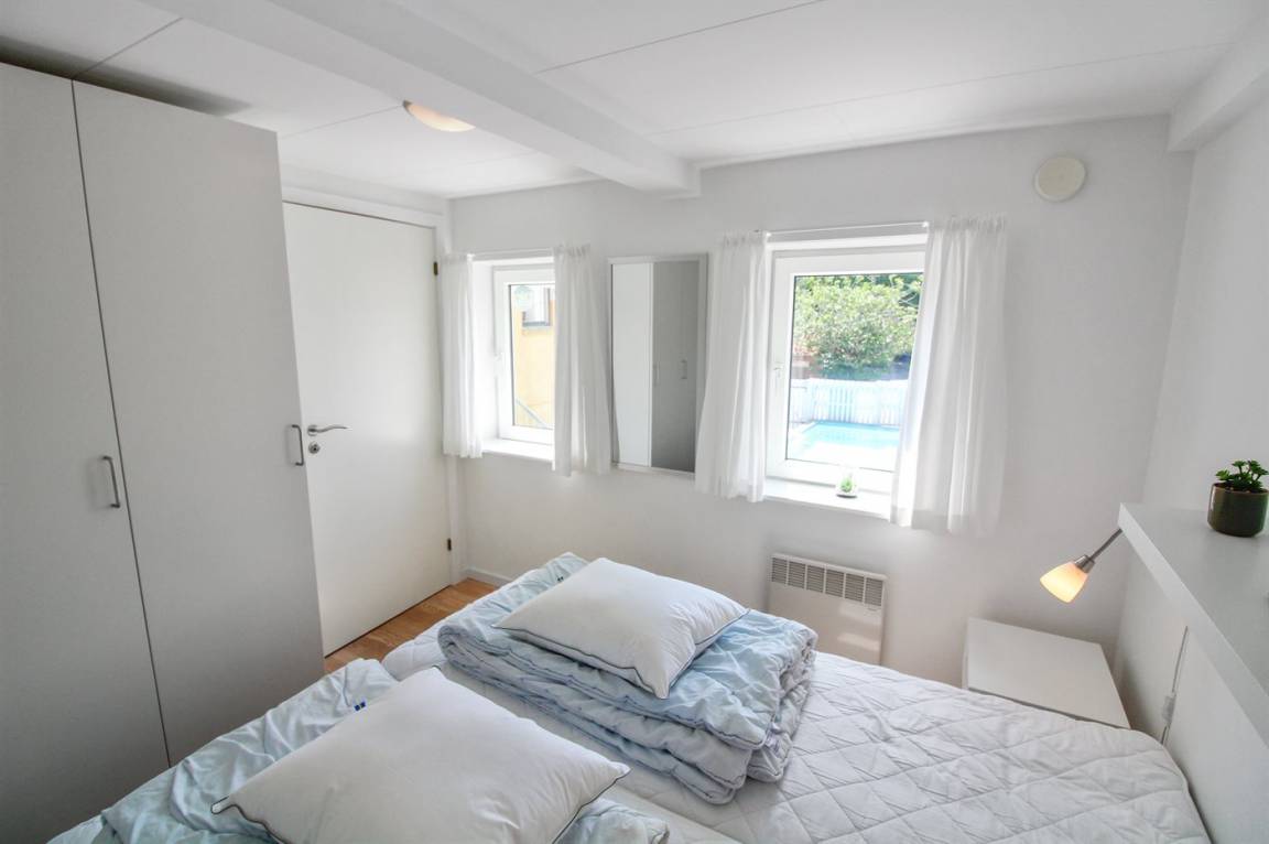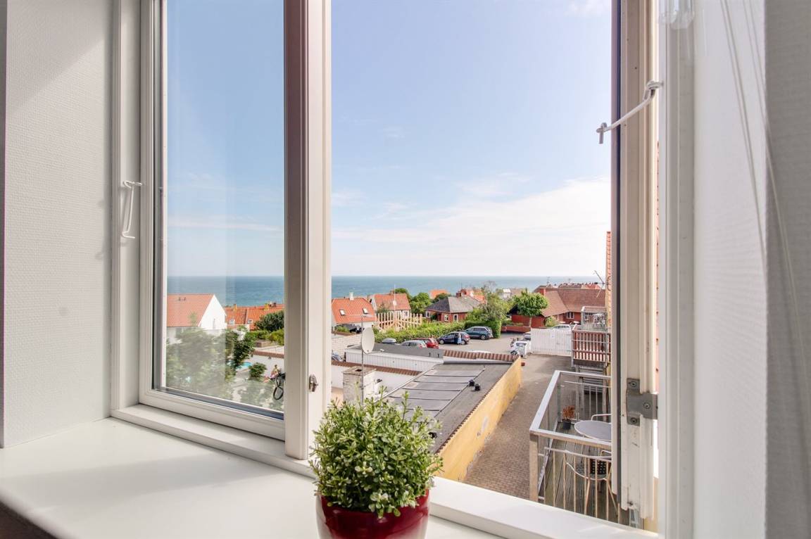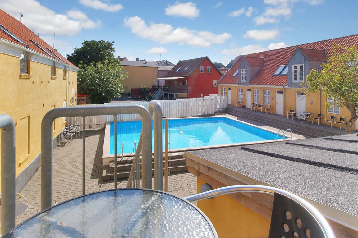 Diese nette, 2-stöckige Ferienwohnung mit Meeresblick liegt im 1. und 2. Stock in dem ehemaligen Kaufmannshof "Gudhjem Købmandsgård" – mitten im charmanten Fischerdorf Gudhjem. Zur Wohnung gehört ein gemeinsamer Sonnenhof mit gemeinsamen Außenswimmingpool. Der Pool ist nicht beheizt und kann vom 1. Juni bis zum 30 September benutzt werden. In der nahe gelegenen Schwimmhalle "Gudhjem-Svømmehal" ist es möglich, die Sauna zu benutzen.