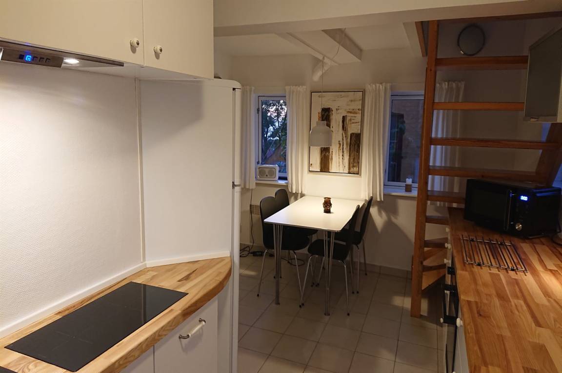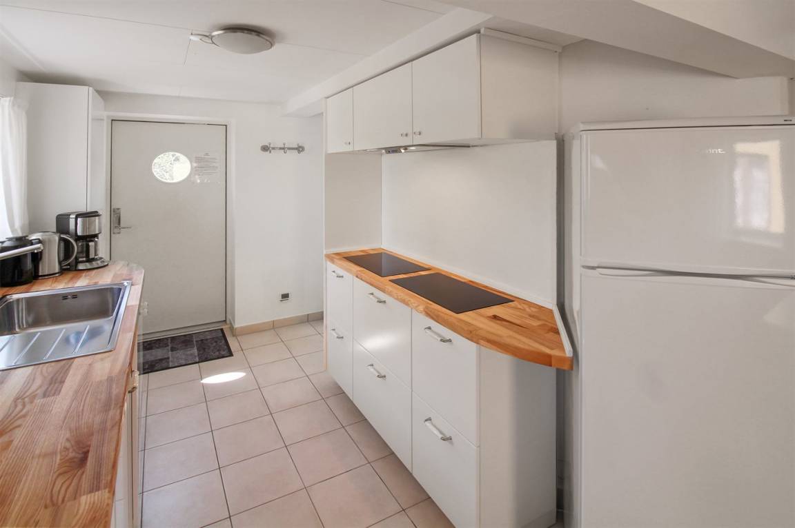 KücheDie Küche ist mit Kühlschrank ausgestattet. Außerdem gibt es 4 Induktions-Kochzonen, Umluftofen, Mikrowelle sowie Geschirrspüler. Fußbodenheizung in der Küche.