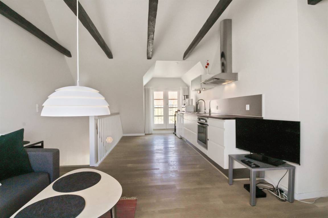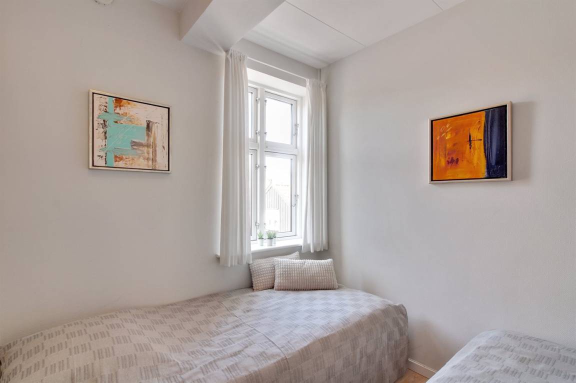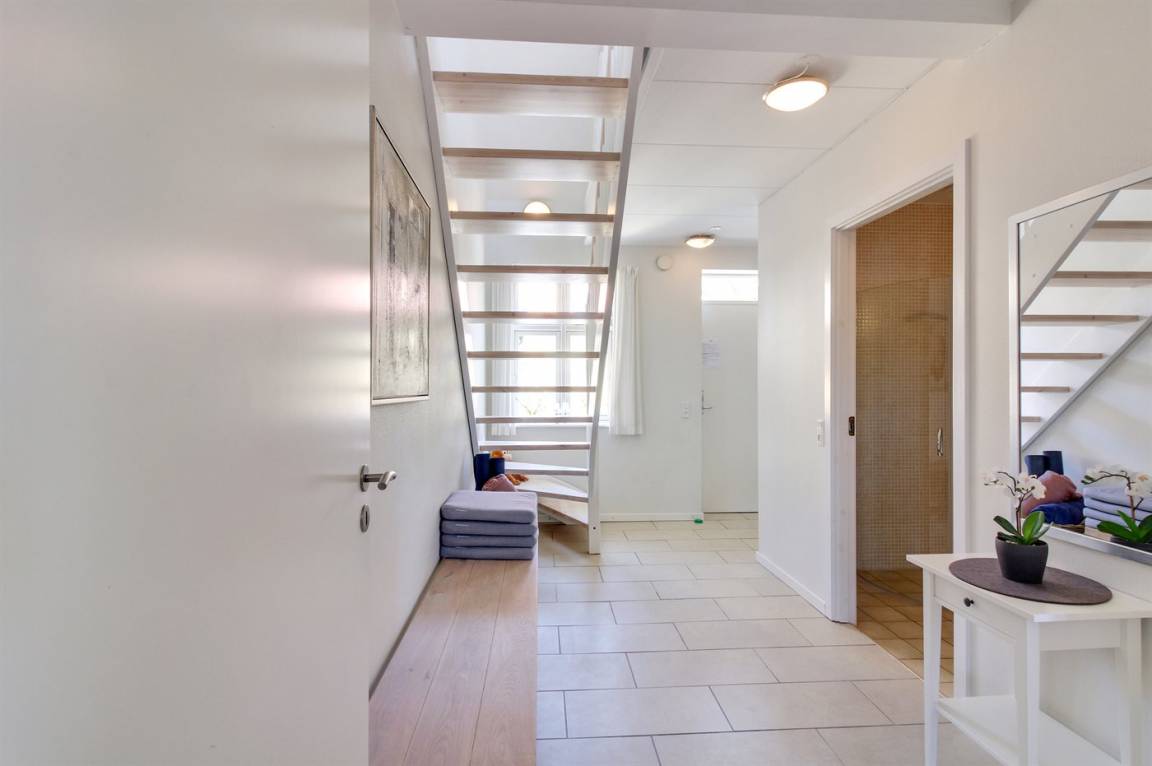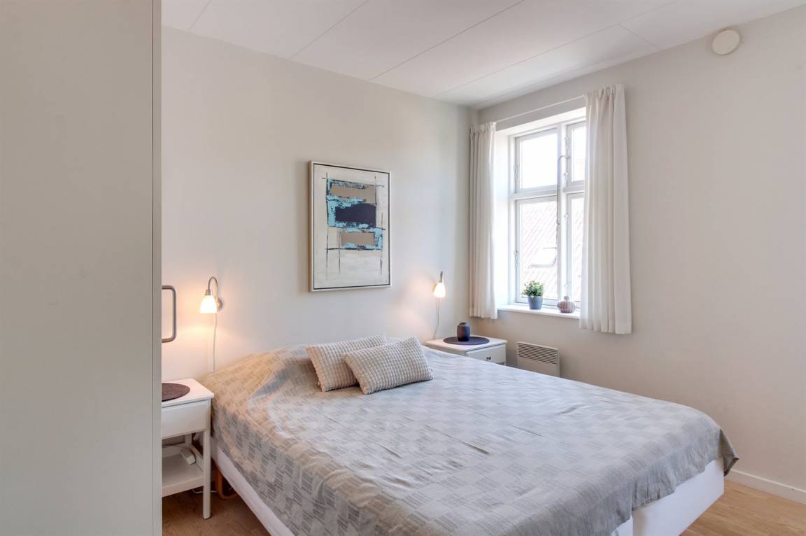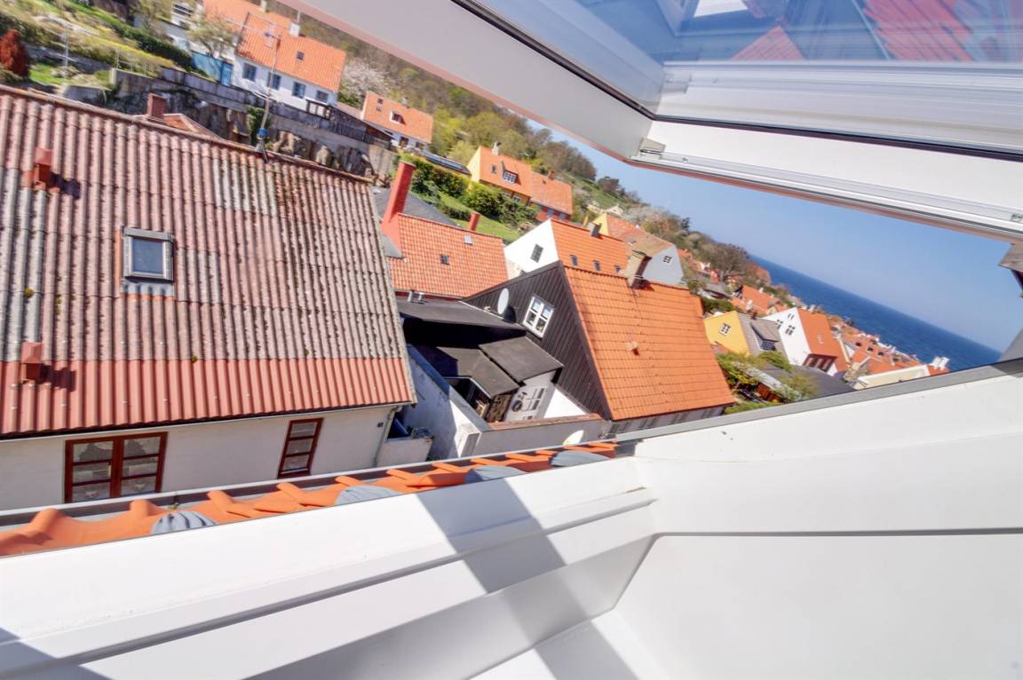 Diese nette, 2-stöckige Ferienwohnung liegt im Erdgeschoss und Obergeschoss in dem ehemaligen Kaufmannshof "Gudhjem Købmandsgård" – mitten im charmanten Fischerdorf Gudhjem. Vom Obergeschoss der Wohnung ist das Meer zu ahnen. Eine hell eingerichtete und gepflegte Ferienwohnung – 2019 teilweise modernisiert. Hier wurde u. a. in der Diele der Boden mit neuen Fliesen ausgelegt. Die Decken bis zum First sorgen für ein geräumiges Ambiente.