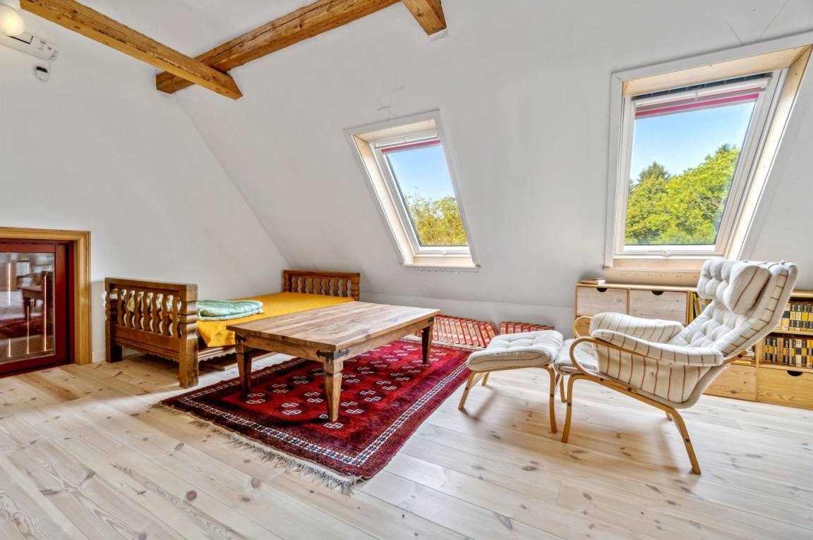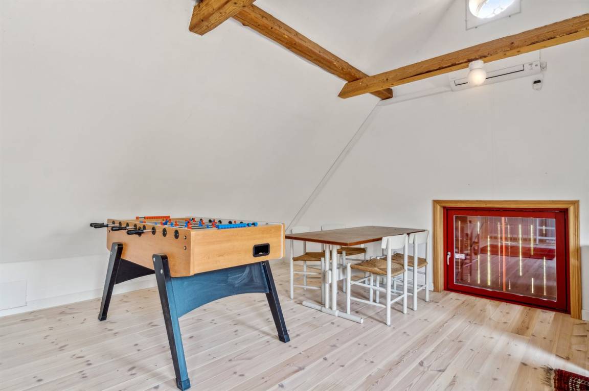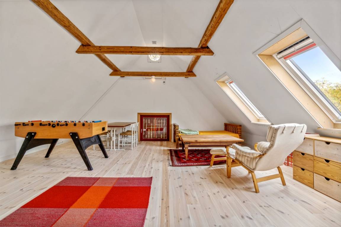 Das Obergeschoss des Hauses ist mit einem großen Aufenthaltsraum eingerichtet, der sich für gemütliche Aktivitäten wie Spiele, Lesen oder einfach zum Entspannen eignet.