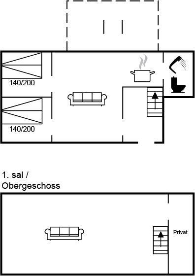 SchlafverhältnisseDie Schlafplätze verteilen sich auf 2 Schlafräume. 4 Schlafplätze in Doppelbetten.