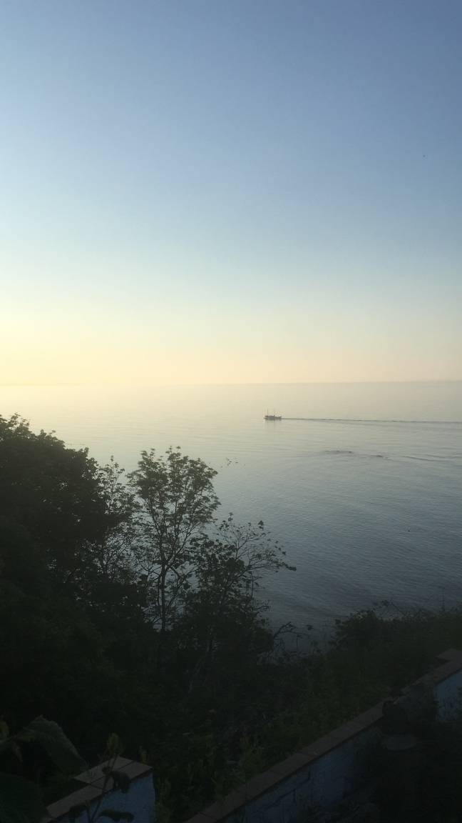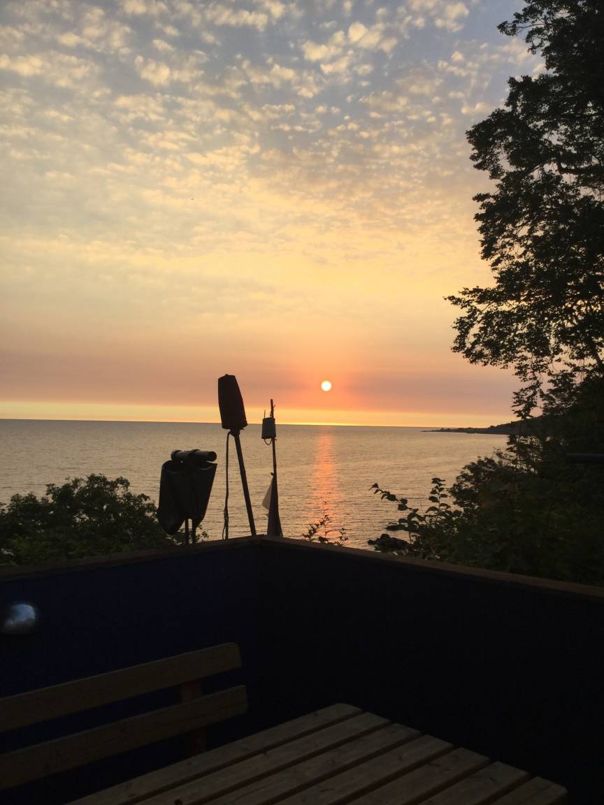 Vom Wohnzimmerfenster aus genießt ihr einen einzigartigen Blick auf die Ostsee und die Erbseninseln Christiansø und Frederikssø, während Segelschiffe vorbeiziehen – ein buntes Farbenspiel.
