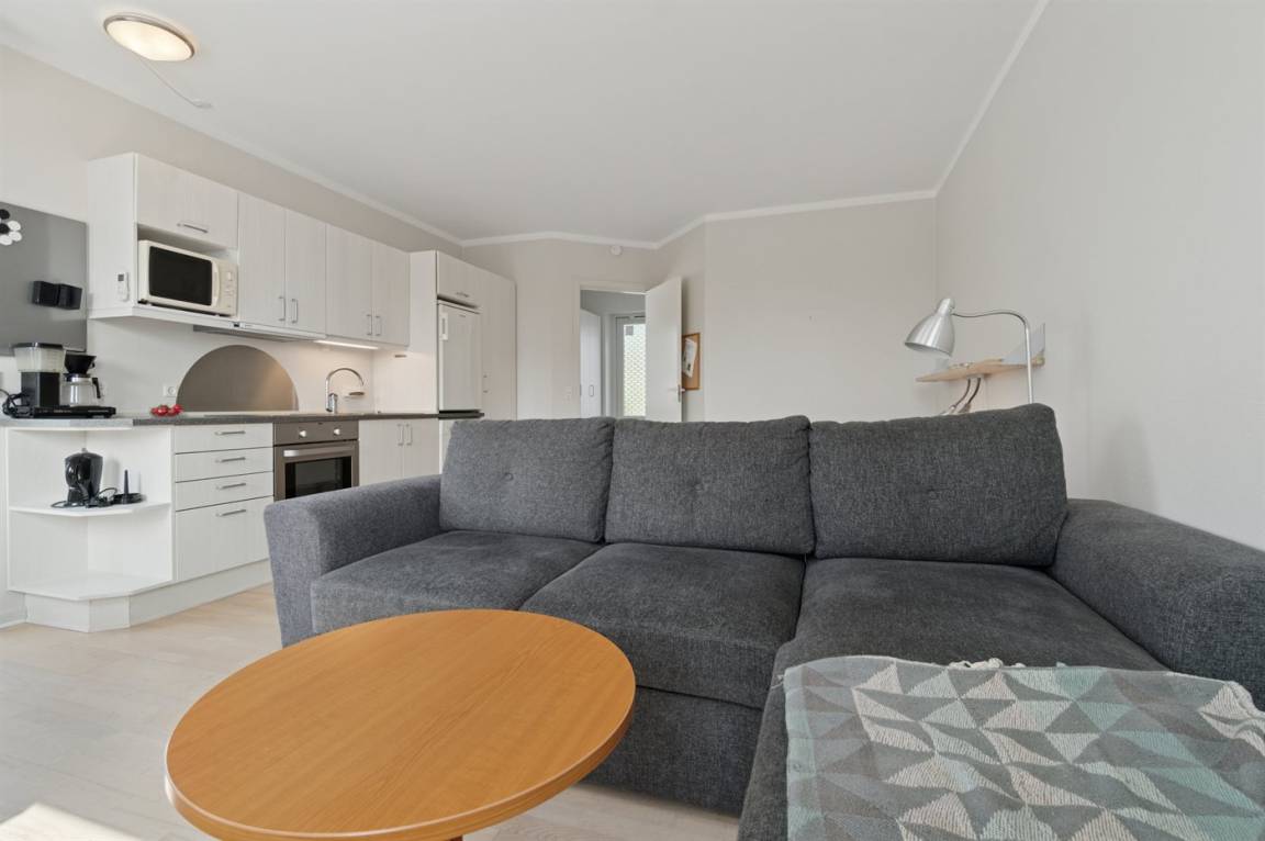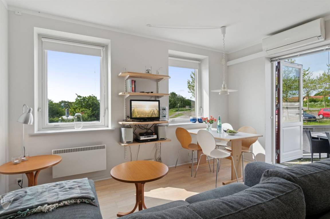 Die Wohnung befindet sich im Erdgeschoss und verfügt über eine kleine private Terrasse zur Straßenseite hin – direkt gegenüber vom Schwimmbad Gudhjem Svømmehal, das sicherlich zu einem Besuch einlädt, wenn das Meer zu kalt ist. Die Ferienwohnung bietet dir ein helles Wohnzimmer mit Ess- und Entspannungsbereich sowie ein großes Doppelbett – ideal für euch als Paar auf Entdeckungstour auf Bornholm. Außerdem gibt es eine gut ausgestattete Küche und ein schönes Badezimmer.