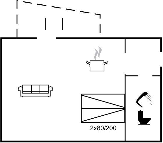 Schlafverhältnisse2 Schlafplätze in einem Doppelbett. Diese 2 Schlafplätzen befinden sich im Wohnzimmer.