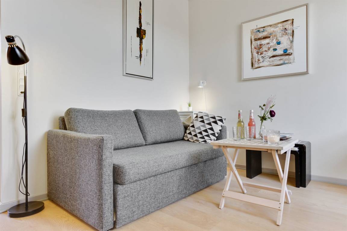 Übrigens: Im Wohnzimmer gibt es eine Doppelschlafcouch (140 x 200 cm).
