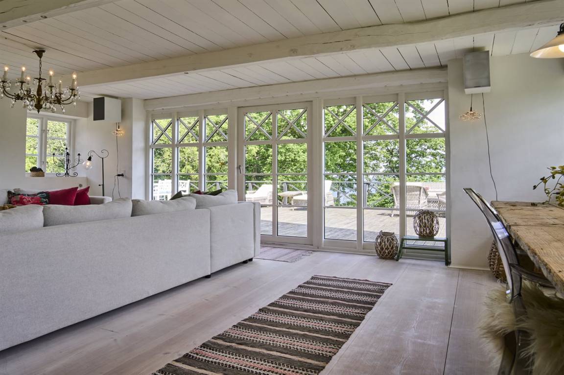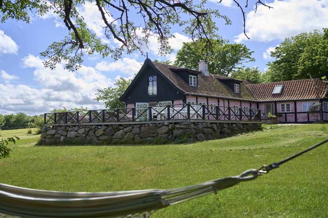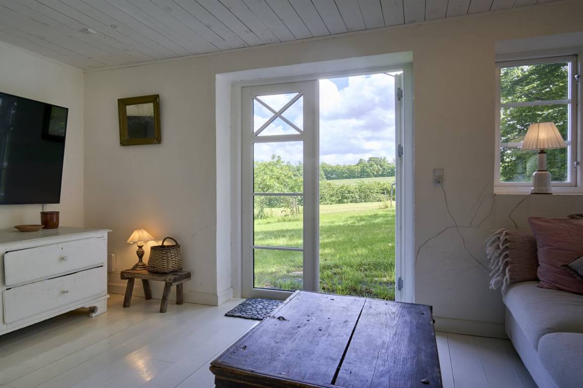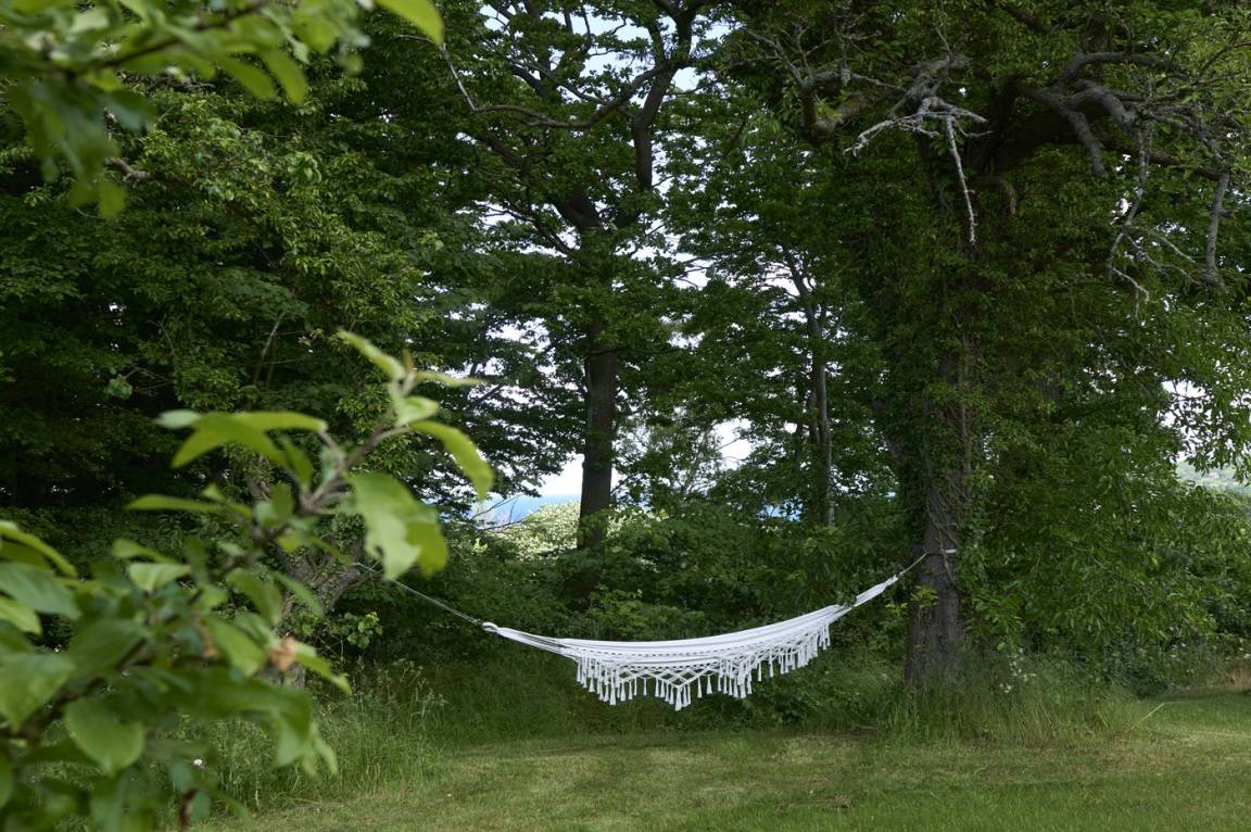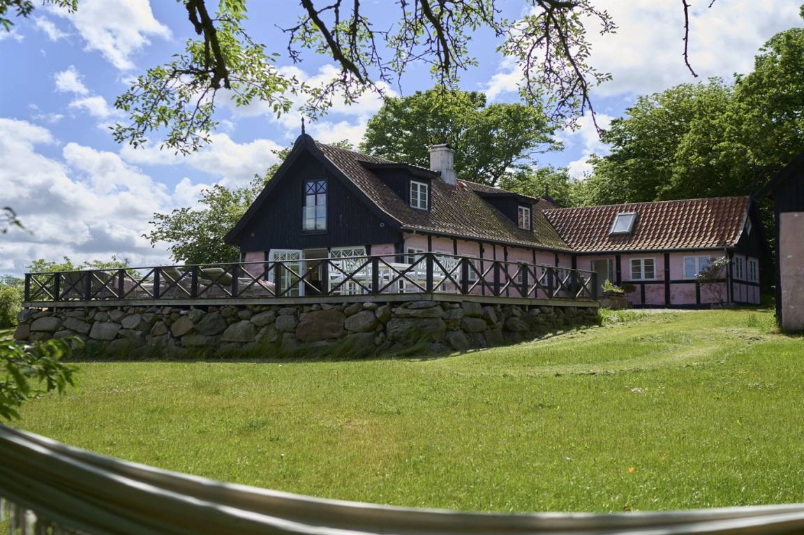 Vom Wohnzimmer aus gibt es direkten Zugang zu einer wirklich großen Terrasse. Hier findet man sowohl Essmöbel, Loungemöbel, Sonnenliegen und einen Gasgrill. Es gibt insgesamt drei Terrassen, alle mit Meerblick. Das Grundstück umfasst 3 Hektar und erstreckt sich rund um das Haus bis zu den Klippen und ans Meer, auf der anderen Seite der Landstraße. 250 m vom Haus entfernt findet man den schönen Klippenpfad zwischen Gudhjem und Helligdommen. Im Garten gibt es eine große Lagerfeuerstelle, eine Hängematte und viel Platz. Es gibt gute Parkmöglichkeiten am Haus.