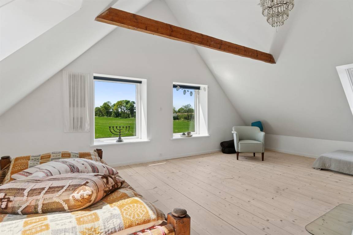 Das Haus liegt auf einem sehr großen Naturgrundstück weit draußen auf dem Land. Vogelgezwitscher, vielleicht ein Igel, ein Fasan oder – mit etwas Glück – ein Reh im Garten: Hier erwarten dich wundervolle Naturerlebnisse. Helles, angenehmes Ambiente – aber vor allem die Ruhe der Natur und all die Grüntöne direkt vor deiner Tür – besser geht's kaum.