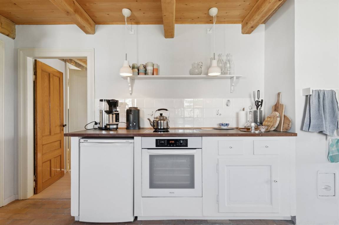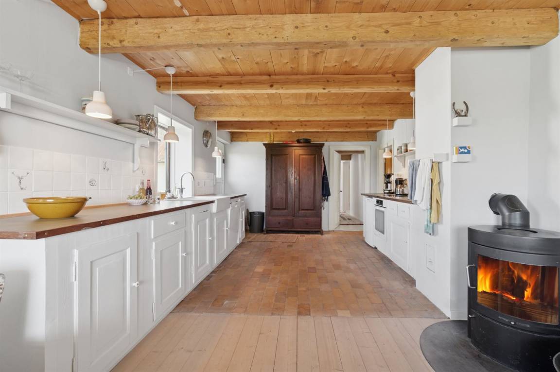 Wenn du die schönen, lokal gefertigten Dielen betrittst, spürst du sofort ein Gefühl von Authentizität und Wohlbefinden. Es gibt eine offene Küche mit allen Elektrohaushaltsgeräten, die du für die Zubereitung leckerer Urlaubsgerichte benötigst. Die Küche ist mit einem netten Essbereich kombiniert, in dem auch Patina eine besondere Rolle spielt. Außerdem gibt es ein großes Wohnzimmer mit einer gemütlichen Sofaecke, die dem einladenden Kaminofen zugewandt ist – perfekt für gute Gespräche oder entspannte Lesestunden.