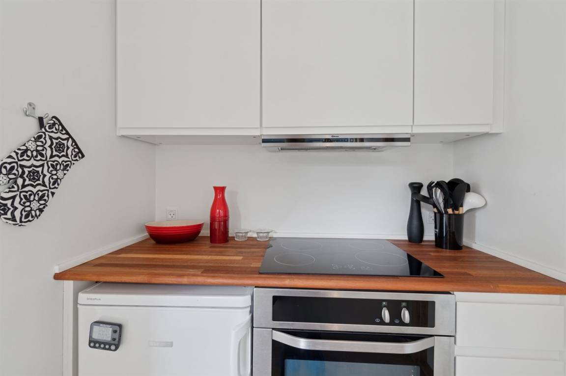 KücheDie Küche ist mit Kühlschrank ausgestattet. Außerdem gibt es 4 Keramik-Kochfelder, Umluftofen sowie Geschirrspüler.