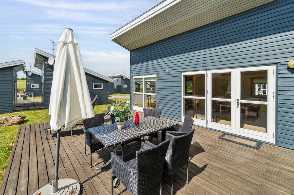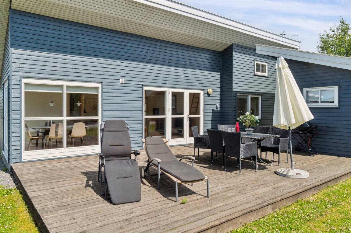 Die Holzterrasse des Hauses lädt zu Stunden im Freien ein – hier kannst du das Wetter und die Natur in vollen Zügen genießen.