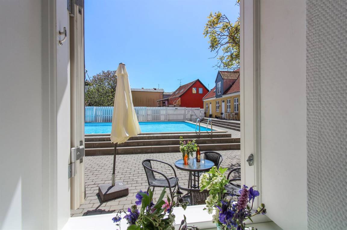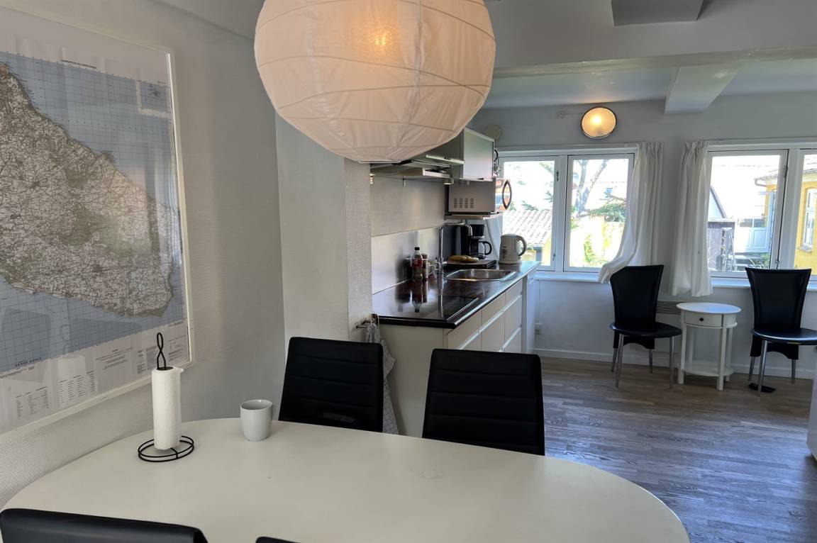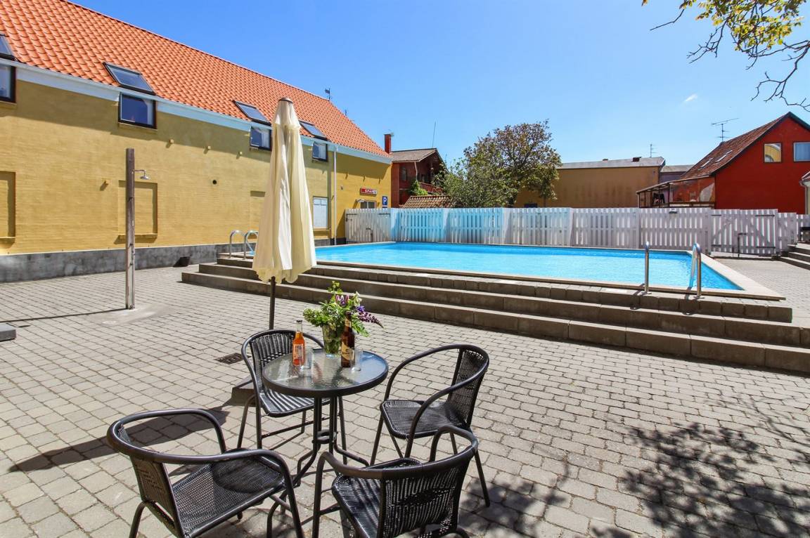 Diese nette und hell eingerichtete Ferienwohnung liegt im Erdgeschoss in dem ehemaligen Kaufmannshof "Gudhjem Købmandsgård" – mitten im charmanten Fischerdorf Gudhjem. Zur Wohnung gehört ein gemeinsamer Sonnenhof mit gemeinsamen Außenswimmingpool. Der Pool ist nicht beheizt und kann vom 1. Juni bis zum 30. September benutzt werden.