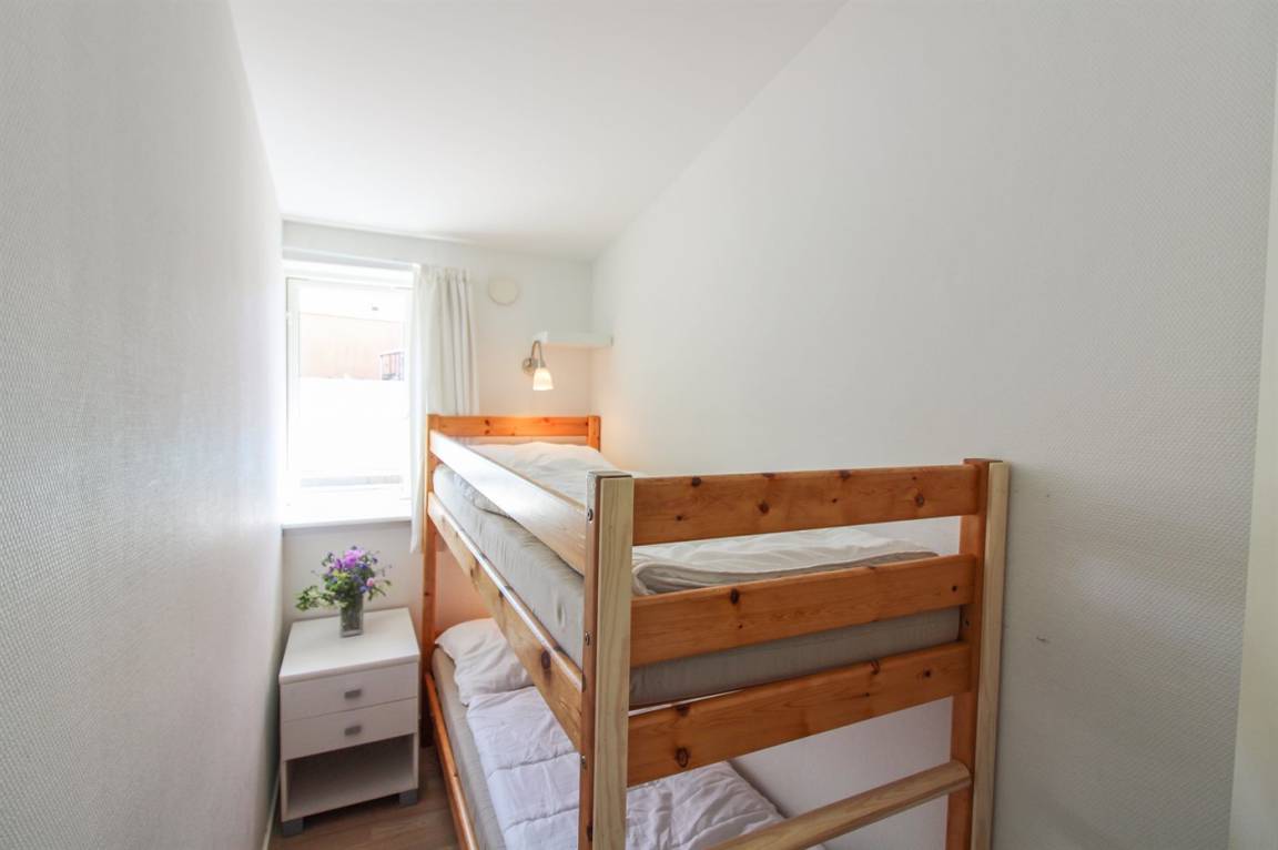 „Prior to the vacation at the holiday home: Alt ok! The vacation at the holiday home: Det lille værelse var meget lille, man kunne ikke undgå at støde ind i vægen når man tog tøjet af/på. Man kunne ikke sidde på sengen uden at bumpe hovedet op i overkøjen. Departure and follow up: God og hyggelig betjening“