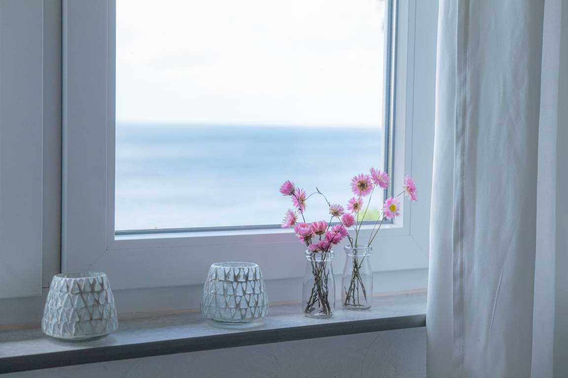 Vom Wohnzimmerfenster und von der Seeterrasse haben Sie eine einmalige Aussicht auf die Ostsee und die Erbseninseln Christiansø und Frederikssø. Segelschiffe ziehen vorbei und sorgen für ein farbenfrohes Spektakel.