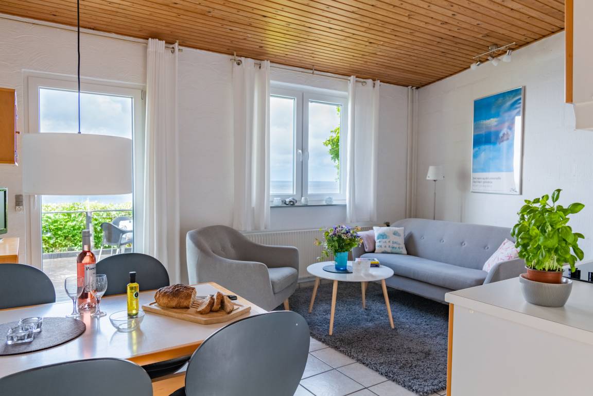 Und wir bieten eine praktisch eingerichtete Ferienwohnung mit Blick auf die Ostsee an, die nur einen Steinwurf entfernt ist.