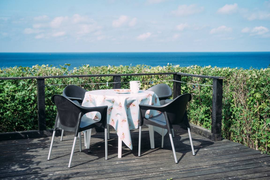 Genießen Sie Ihr Frühstück auf Ihrer eigenen Terrasse und starten Sie den Tag mit einem herrlichen Blick auf das Meer.
