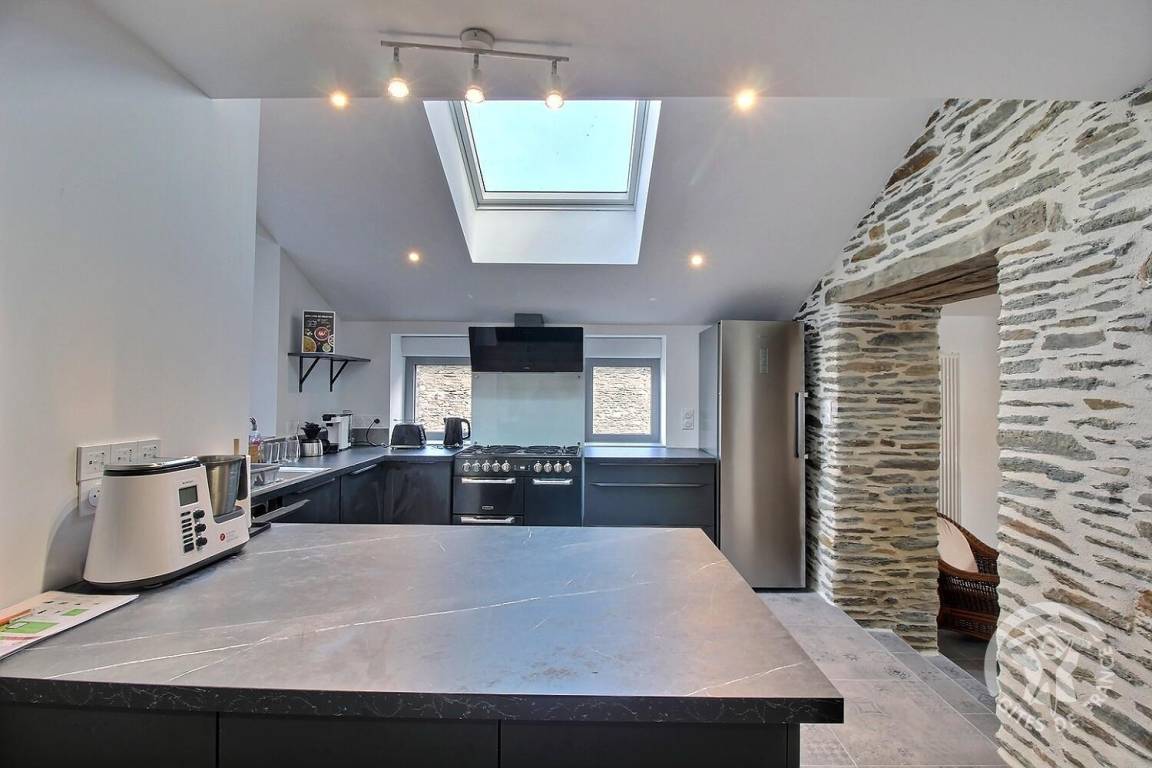 Hier wirkt der Zauber, sobald Sie das Tor überqueren. Das Grundstück grenzt an den Bach, die Terrasse, von der aus Sie die 4 hübschen Hochlandkühe in ihrem Gehege sehen können. Und was ist mit der Inneneinrichtung: schöne Volumen, das 50 m² große Wohnzimmer mit Billard, Darts: ideal für Unterhaltung am Ende des Tages und das Muss: der Kinoraum, als ob Sie dort wären ... Sie können Ihre Lieblingssendungen ansehen Filme oder projizieren Sie Ihre vorbereiteten Diashows in völliger Diskretion... Die Aufteilung der Räume ist sinnvoll und Sie haben sogar einen PRM-Raum! Naturliebhaber werden begeistert sein: Sie erreichen das Poulancre-Tal mit seinem See (3 km), den 12 km langen Guerlédan-See mit seiner Wasserbasis (Paddel, Kanu usw.) und seine 4-Personen-Mountainbike-Strecken km.