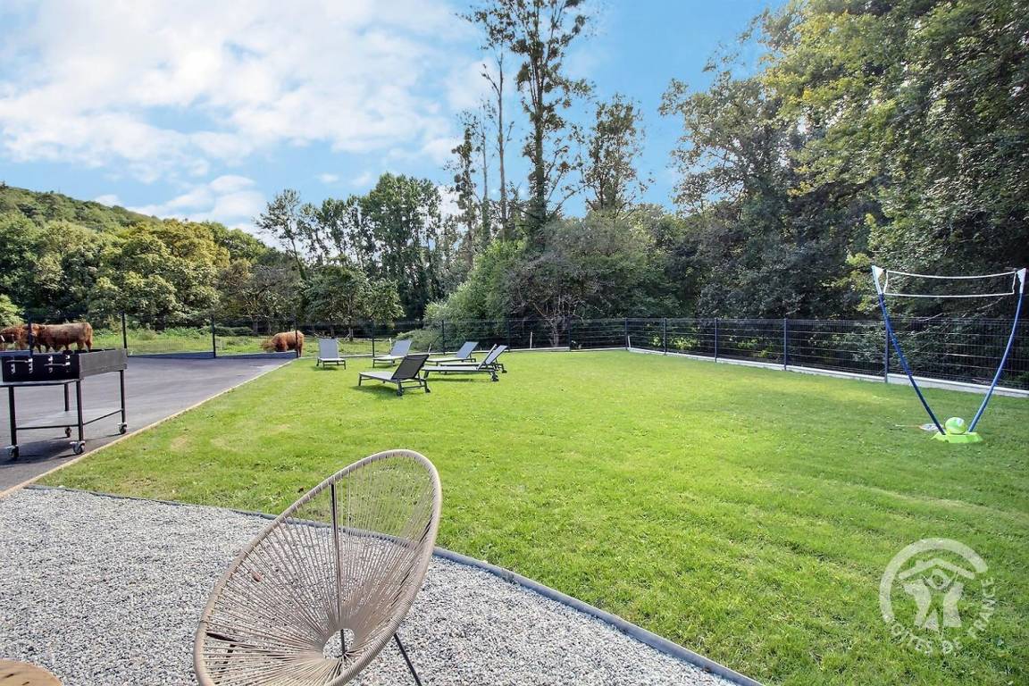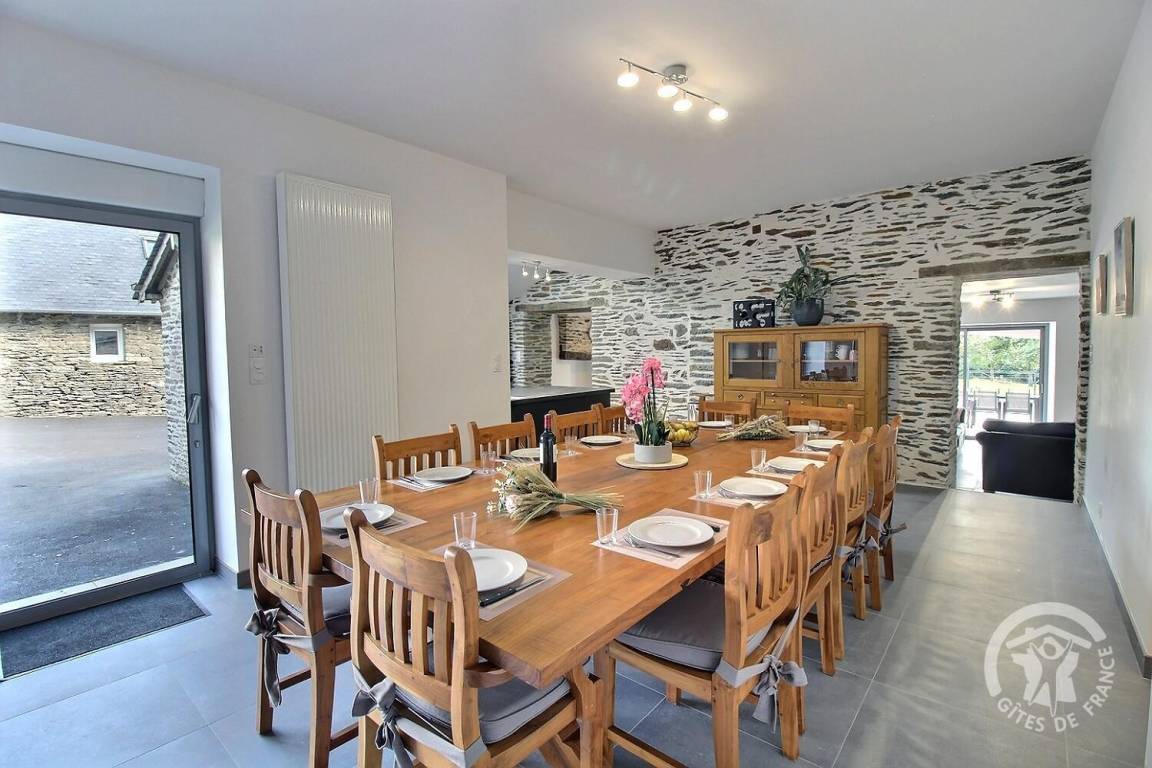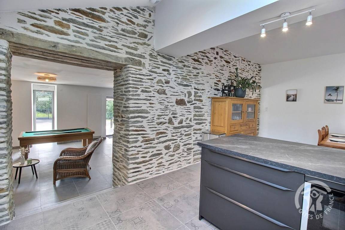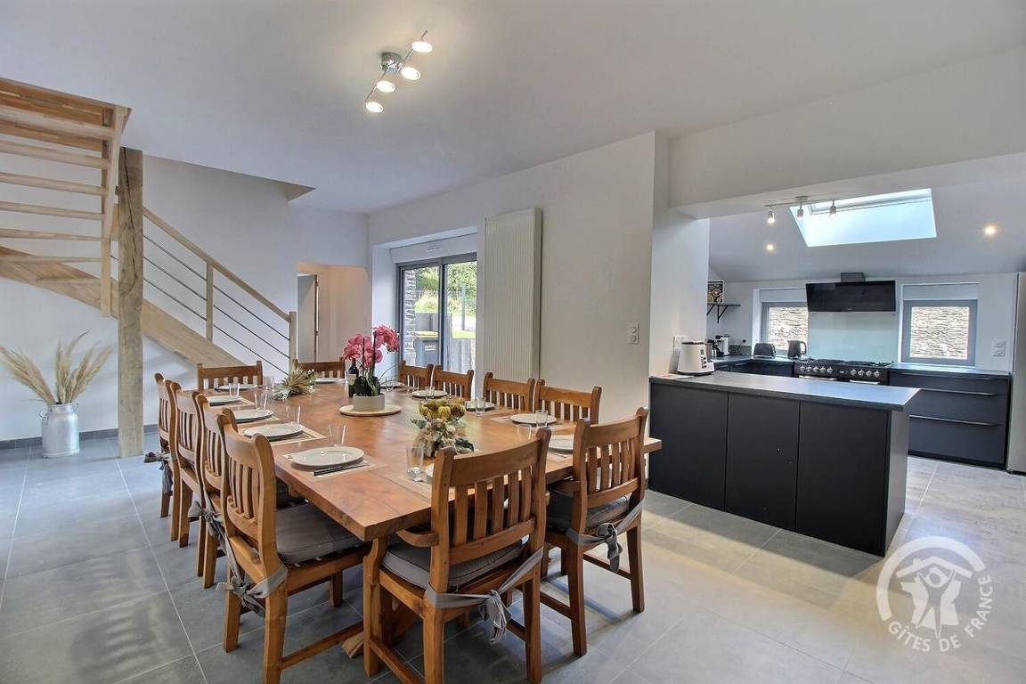 „Nous avons passé un excellent week end au gîte pour des retrouvailles en famille. Nous étions 12 adultes/grands ados et 5 enfants, des couchages pour tous. La gîte est très bien équipé, spacieux et bien pensé. La cuisine est très complète et idéale pour cuisiner à plusieurs. (Prévoir peut être quelques bols et petit plats de service en plus) Le billard a fait l unanimité. Une soirée de jeux au coin du poêle dans le salon spacieux. (Un bahut rempli de jeux de société) Literie agréable et salles de bain au top. Les ados ont adoré la salle cinéma. Malgré un temps maussade chacun à pu profiter pleinement du week end. Sous le regard des petites vaches highland que les plus petits ont adoré. Randonnes et balades autour du lac de guerledan a proximité. Je recommande vivement.“
