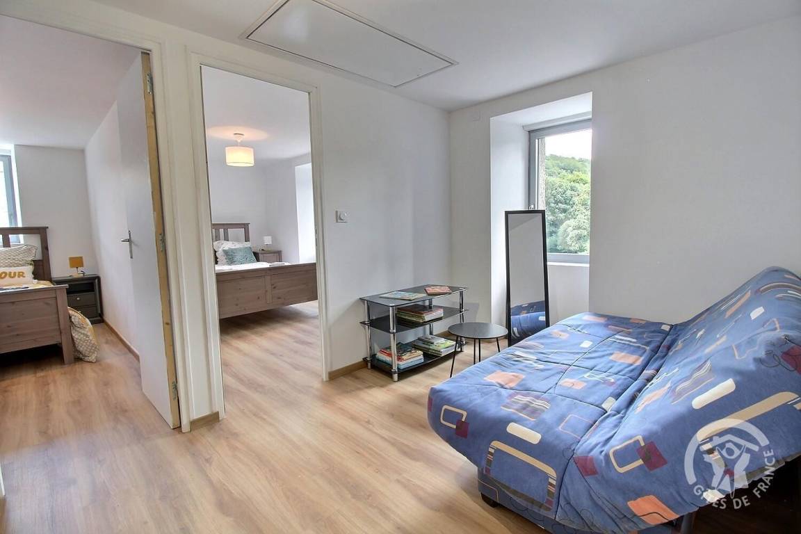 1 Schlafzimmer (1 Bett 140x200), 1 Schlafzimmer (1 Bett 140x200) und 1 Schlafzimmer (1 Bett 160x200), Zwischengeschoss mit Schlafsofa, Badezimmer (Badewanne) und WC