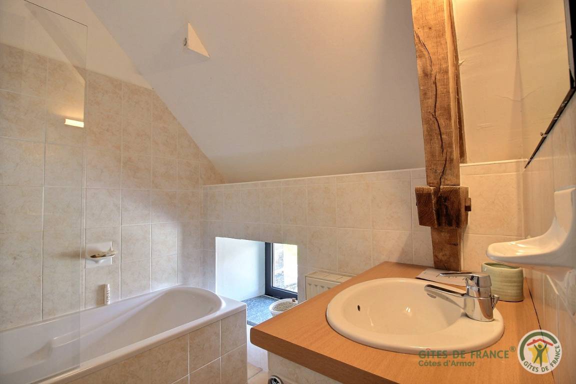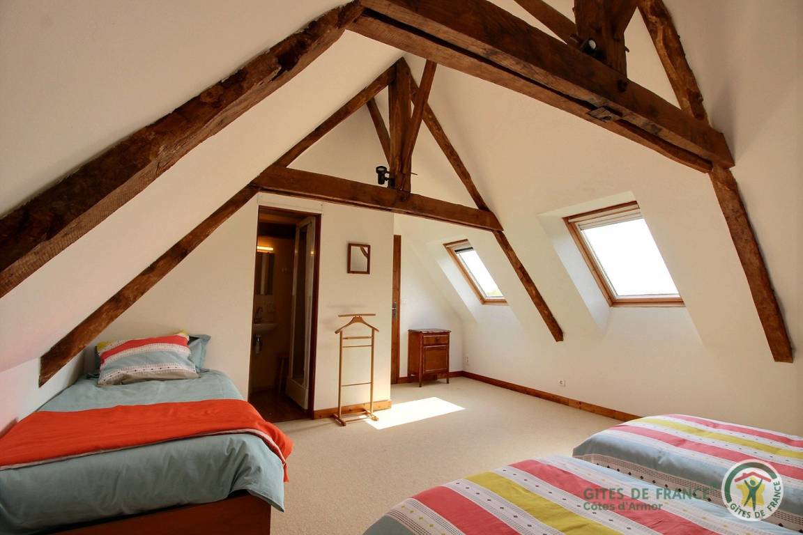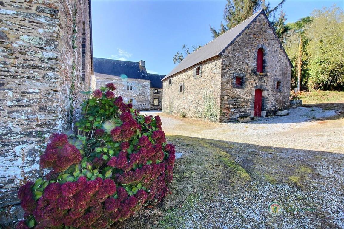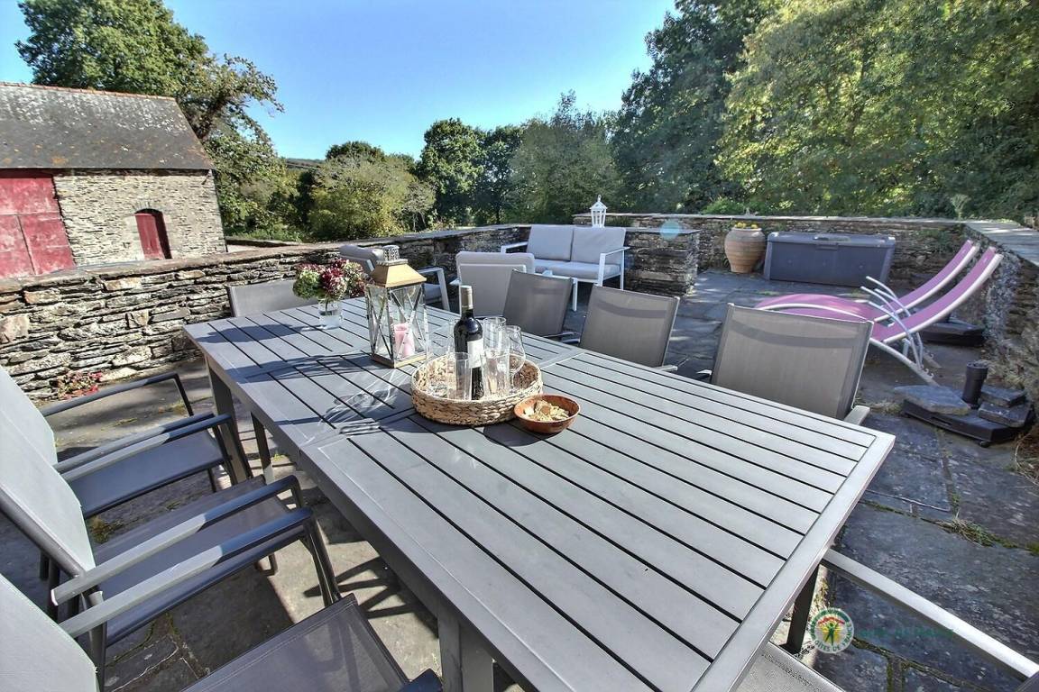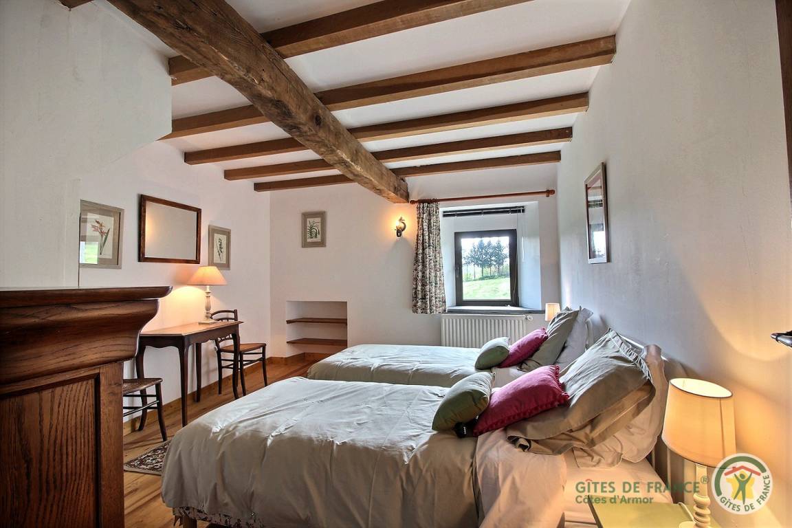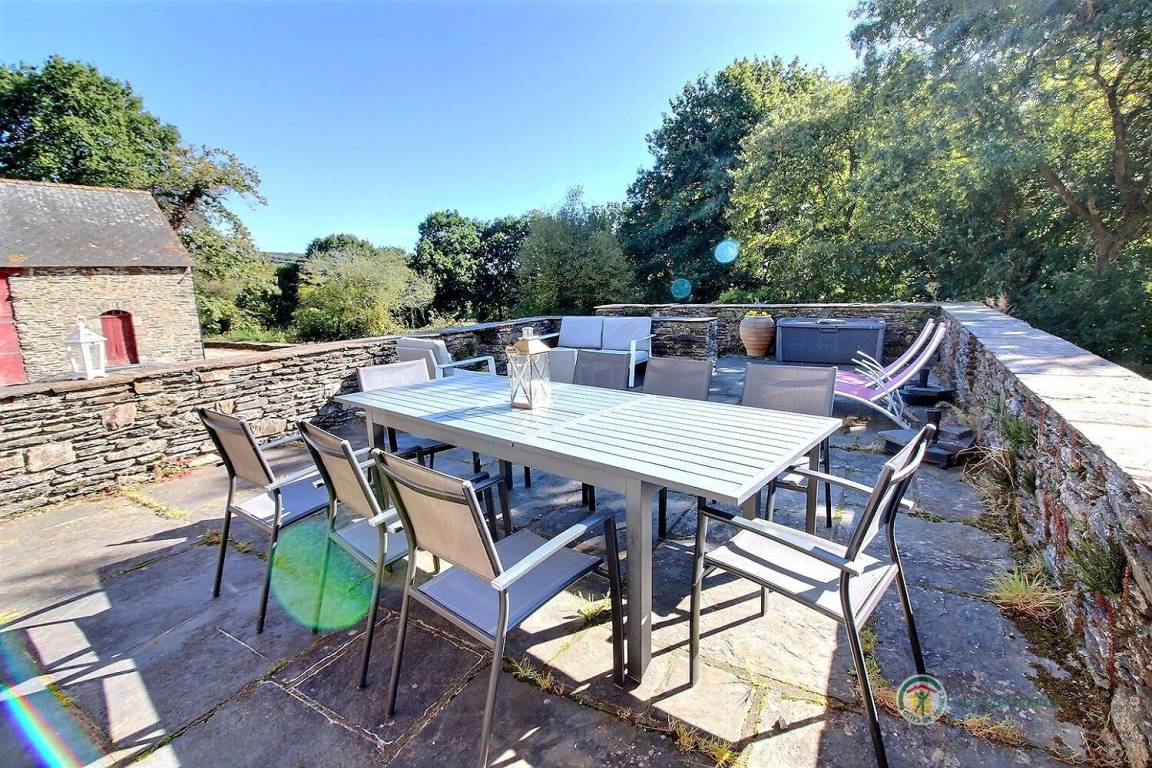 -Im 2. Stock: ein helles Schlafzimmer mit Blick auf den Guerlédan-See mit 3 90x190-Betten und einem kleinen Badezimmer mit Waschbecken, Dusche und WC neben diesem Schlafzimmer. Babyausstattung vorhanden. Großer geschotterter Innenhof von 650 m². Schuppen für Fahrradunterstand.