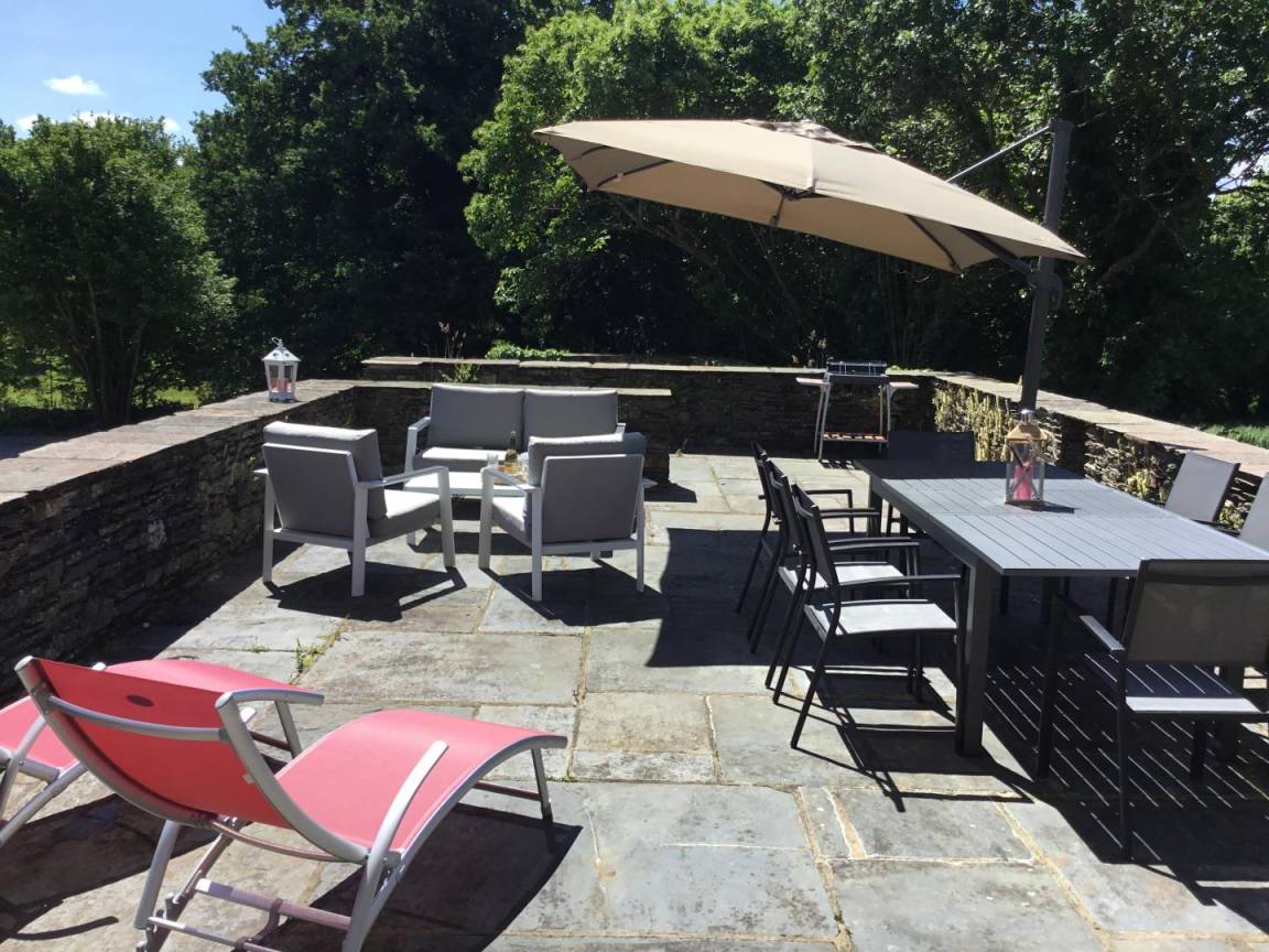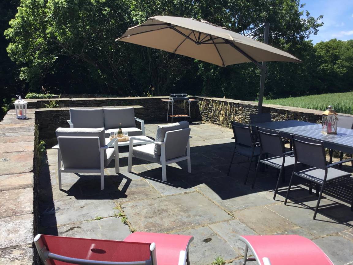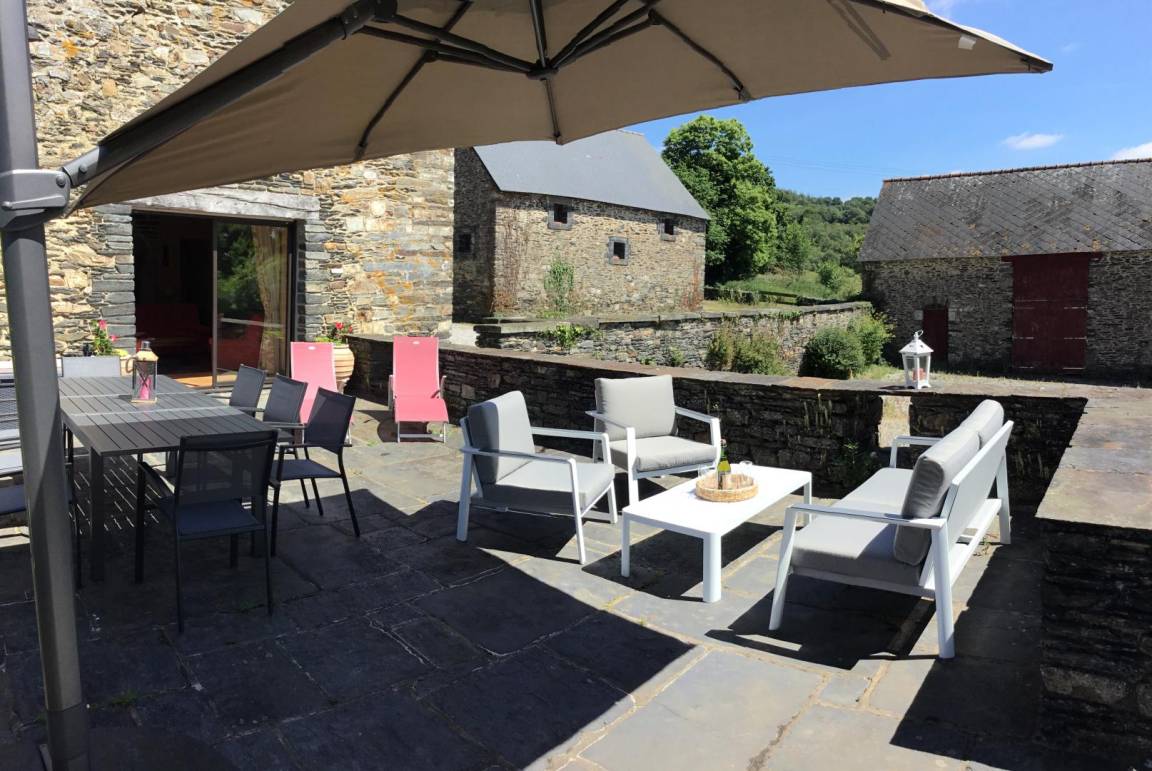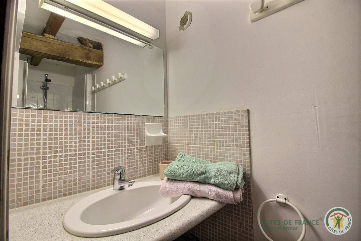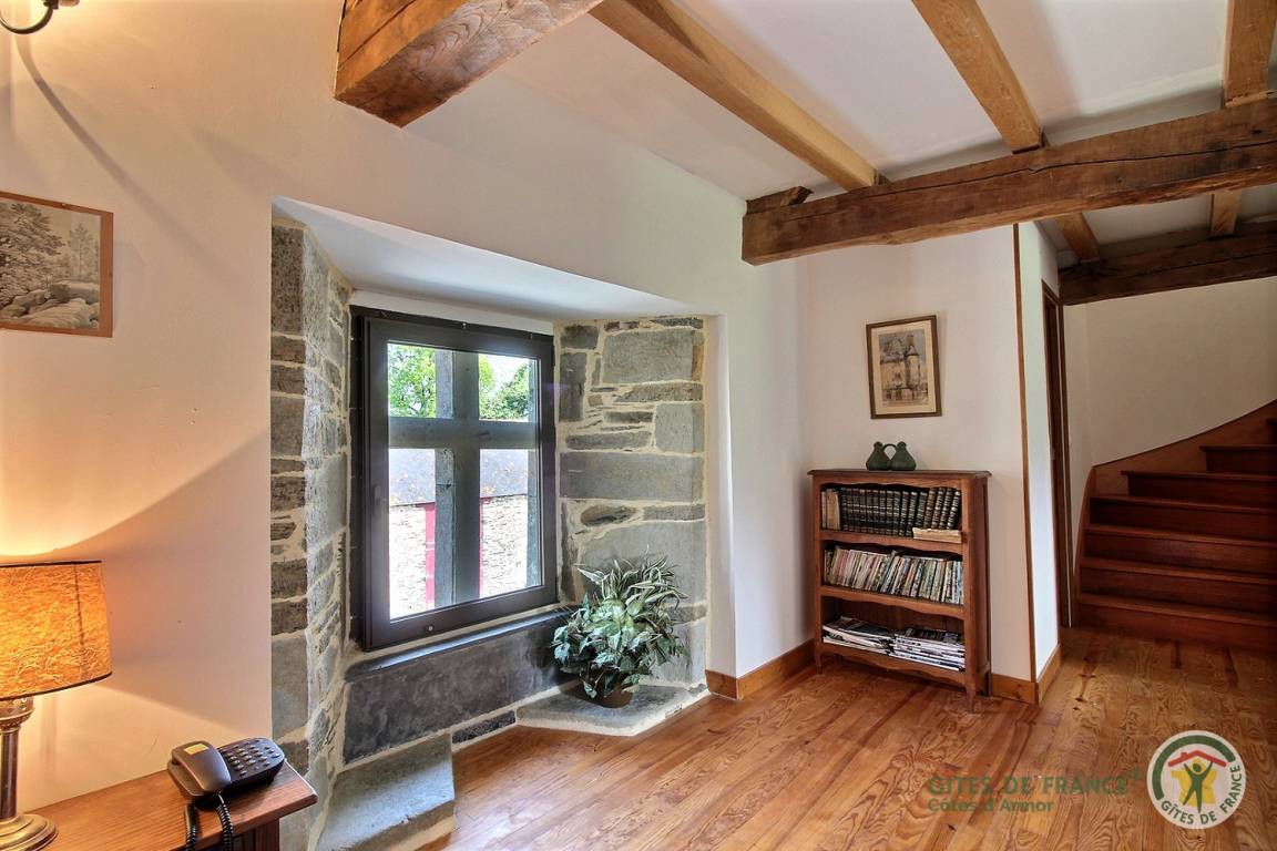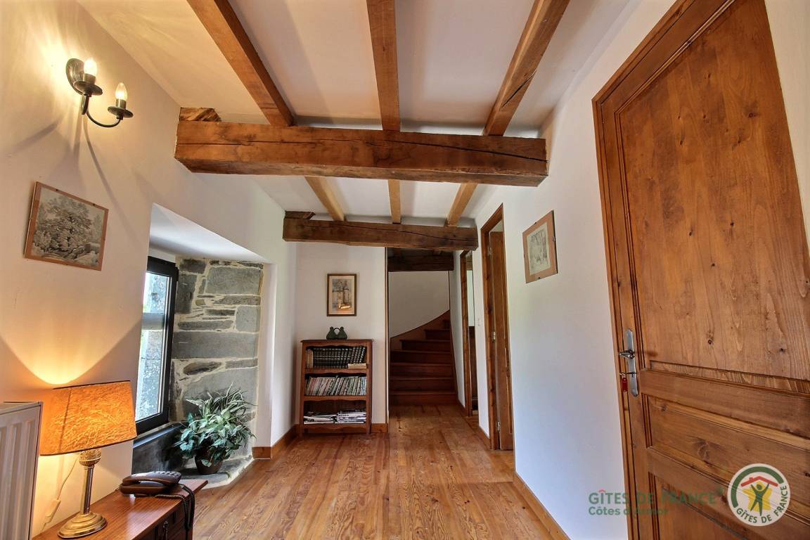 -Im 2. Stock: ein helles Schlafzimmer mit Blick auf den Guerlédan-See mit 3 90x190-Betten und einem kleinen Badezimmer mit Waschbecken, Dusche und WC neben diesem Schlafzimmer. Babyausstattung vorhanden. Großer geschotterter Innenhof von 650 m². Schuppen für Fahrradunterstand.
