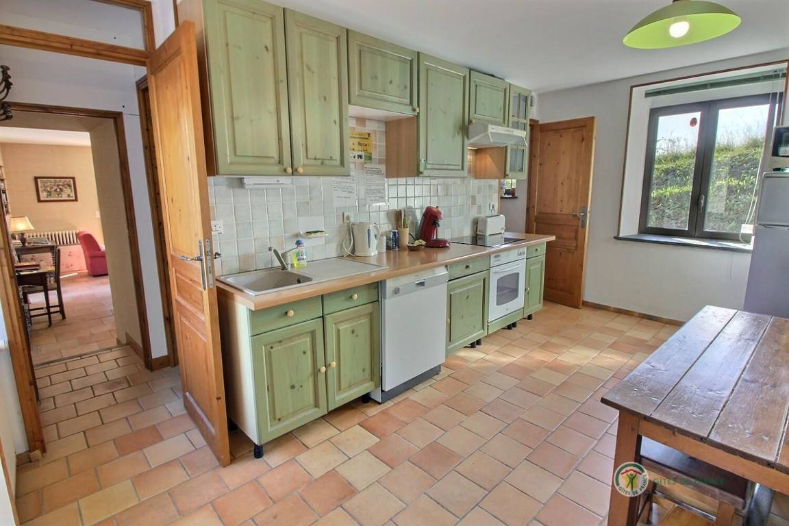 - Einbauküche, geräumiges Wohnzimmer mit Kamin (einige freie Feuer) mit Zugang zu einer 46 m² großen Südterrasse, separates WC, Hauswirtschaftsraum.