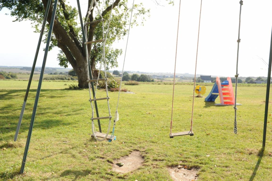 Gemeinsam mit Gîte 56G7811: die Waschküche mit Waschmaschine, ein 5000 m² großes Grundstück, ein Spielzimmer, eine Tischtennisplatte, ein Klettergerüst und eine Rutsche. Beheiztes Freibad gemeinsam mit Gîtes und ungewöhnlichen Unterkünften (10 x 5 m, Tiefe 1,15 m bis 1,80 m), in der Saison geöffnet.