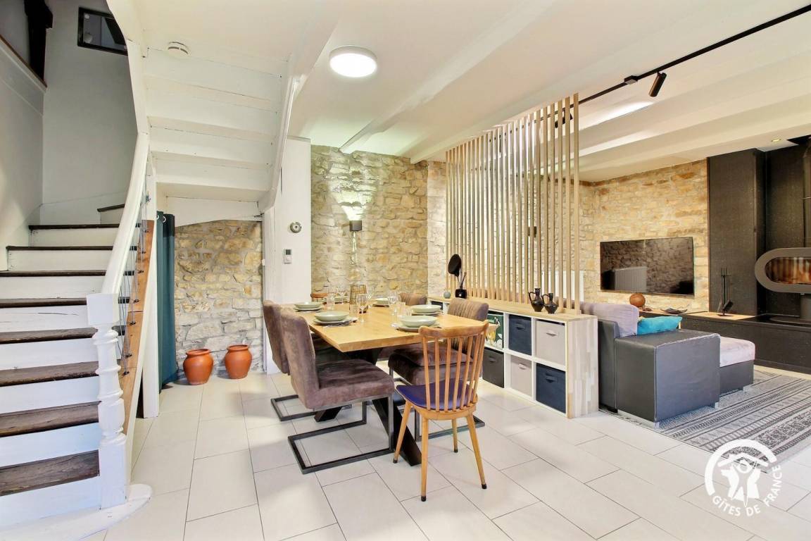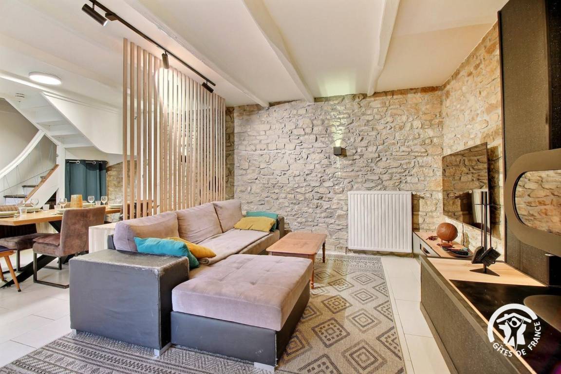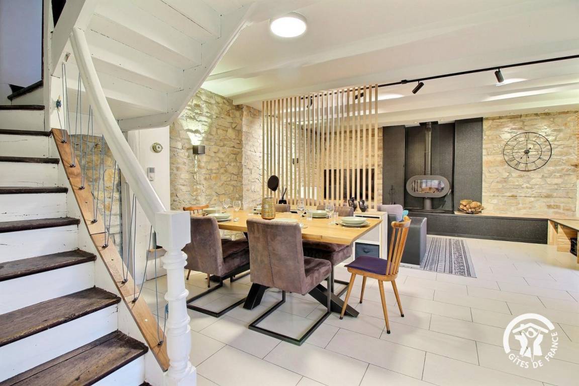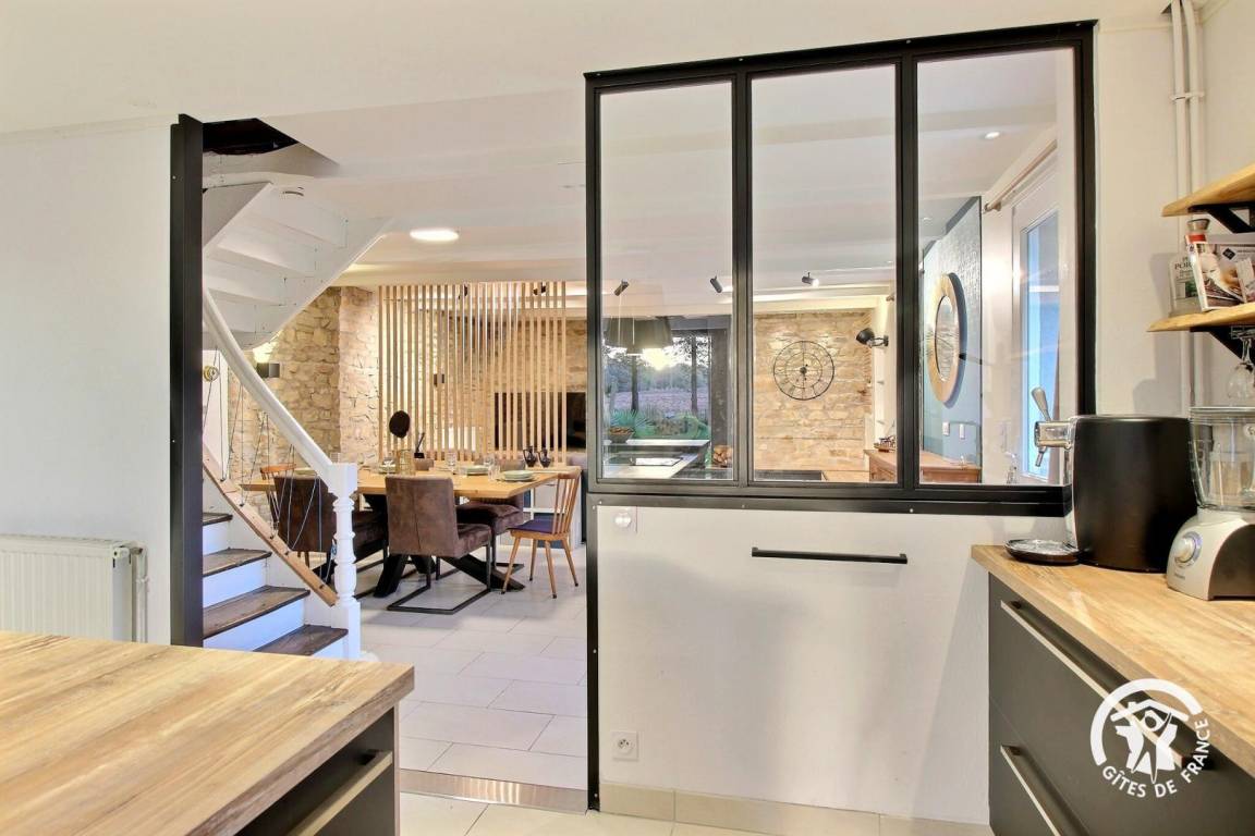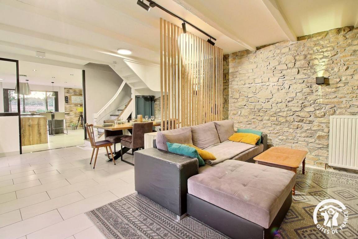Entdecken Sie dieses charmante Steinhaus, in dem Komfort und Authentizität aufeinander treffen. Die Dekoration vereint Modernität und traditionellen Charme und schafft eine warme und raffinierte Atmosphäre.