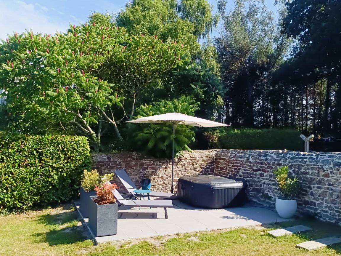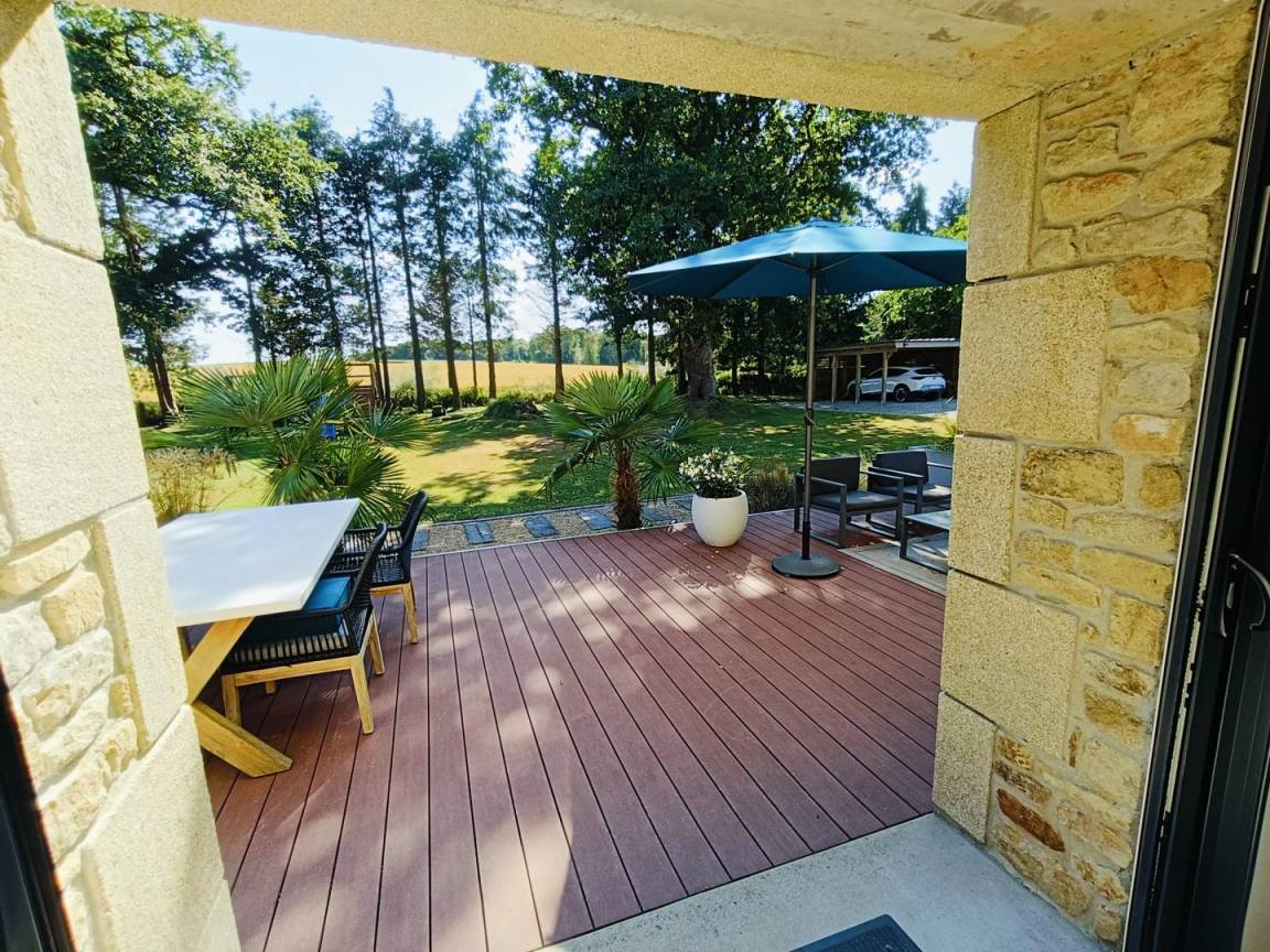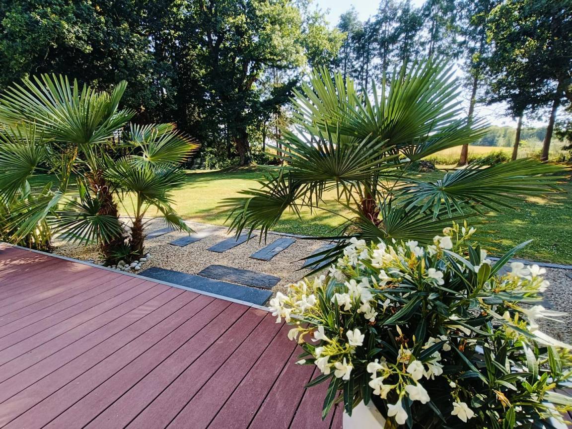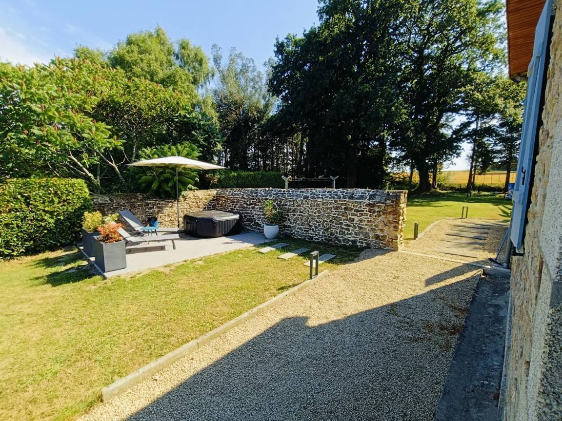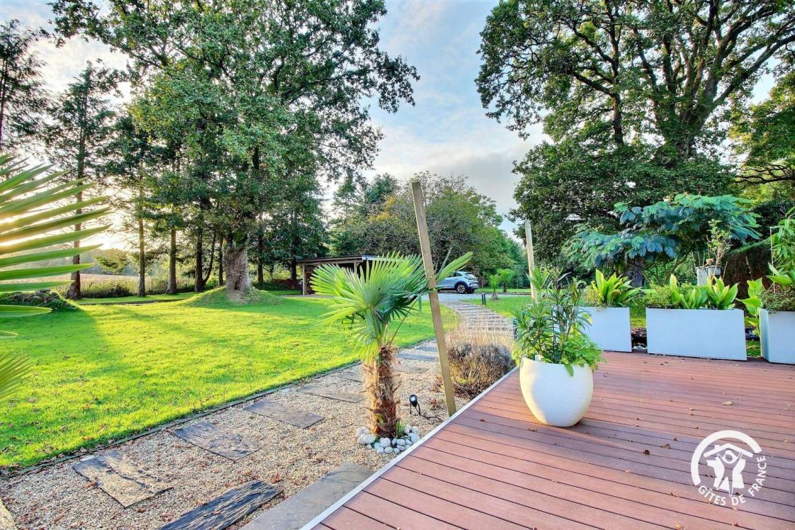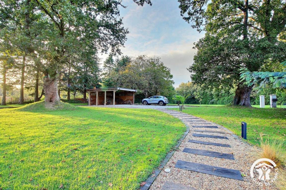 Genießen Sie den bewaldeten Garten, eine Oase der Ruhe mit Blick auf die umliegende Landschaft, ideal für Momente der Entspannung im Freien. In dieser beruhigenden natürlichen Umgebung können Sie neue Energie tanken, während Sie nur 10 Autominuten von den Stränden entfernt sind.