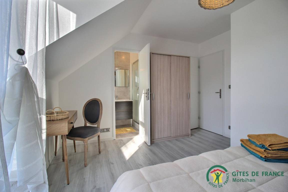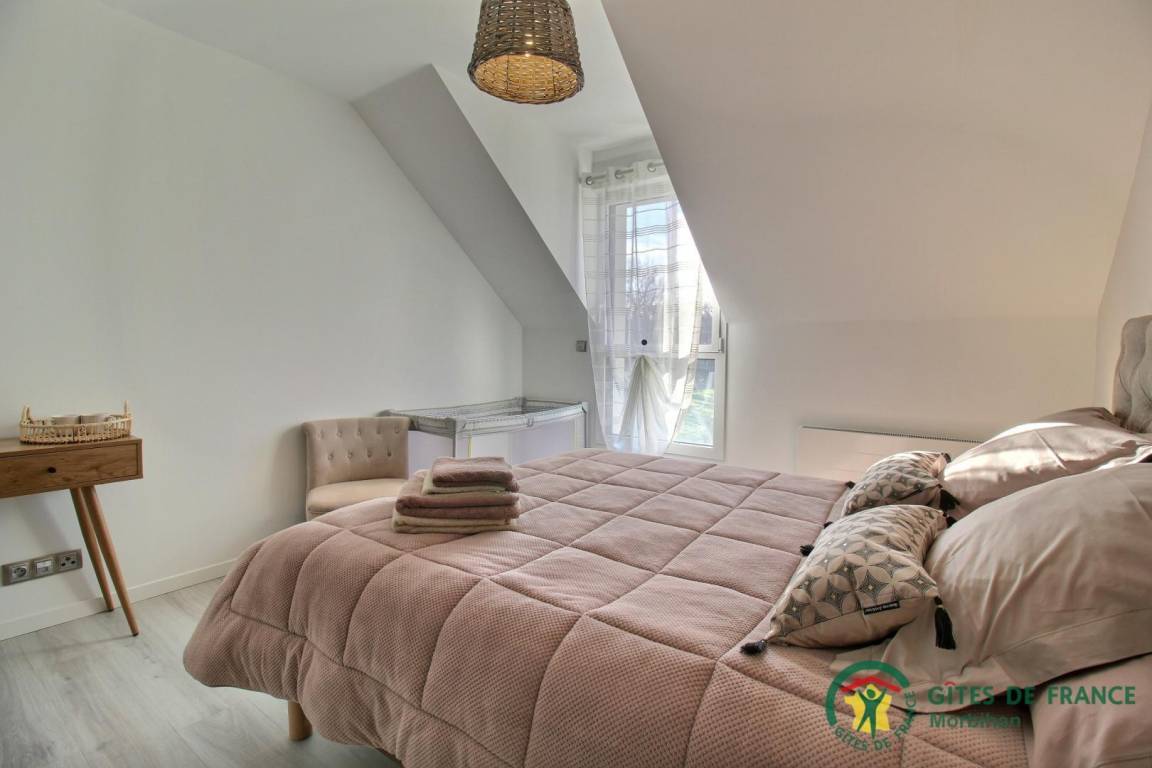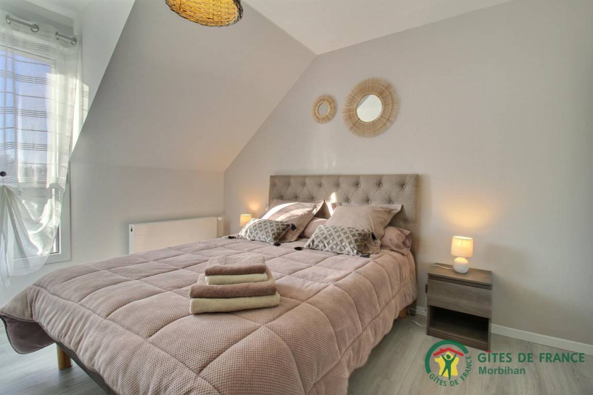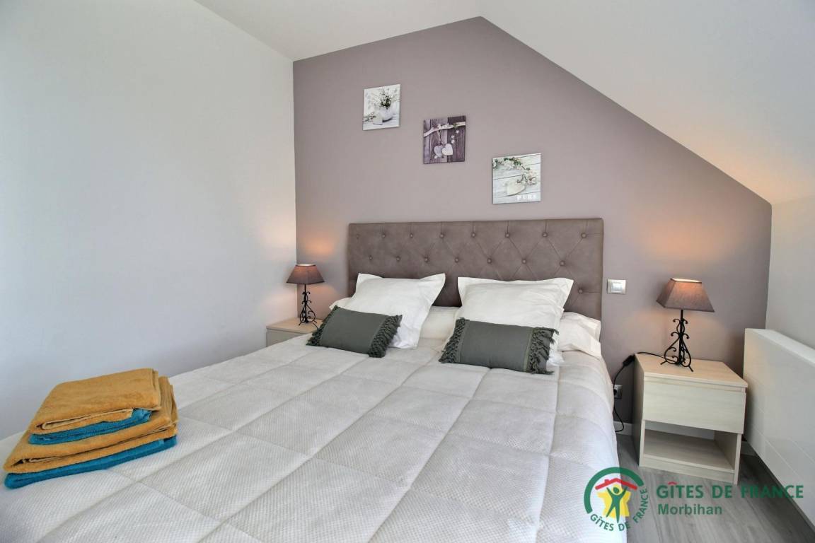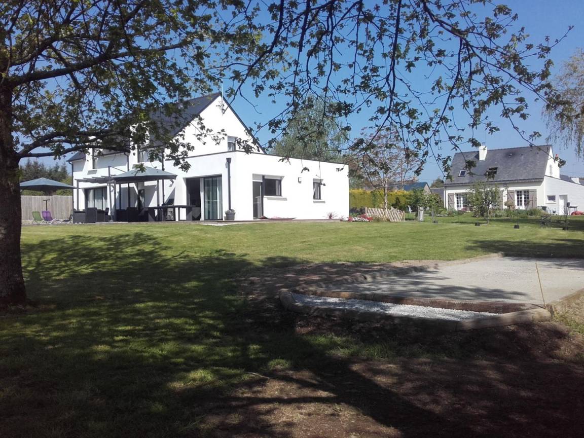 Entdecken Sie den gemütlichen Badeort Guidel im Süd-Morbihan. Das Ferienhaus, ideal gelegen, ist nur 6 km vom Meer entfernt: Badespaß, Wassersport, Segeln, Angeln… Die lebendige Stadt Lorient ist 10 Min vom Haus entfernt: Häfen, Museen, Geschäfte. Schönes und modern gebautes Ferienhaus mit viel Komfort, Licht und Raum. Hier fühlt man sich so richtig wohl, gemütliches Ambiente und gepflegtes Dekor. Im EG: Wohnbereich mit Küche/Wohnzimmer, WC, 2 Zi. mit eigenem Bad mit Dusche/WC, eines mit 1 Bett 160, das andere mit 1 Bett 160 und 1 Bett 90, Waschküche. Im 1. Stock: 3 Zi. mit eigenem Bad mit Dusche/WC (3 Betten 160). Terrasse, geschlossener Garten, Parkplatz. Ein Spazierweg geht direkt beim Ferienhaus weg. Kurtaxe: nach aktuellem Normaltarif/Nacht/Erwachsener, das ganze Jahr. Stromverbrauch: 56kw/h inklusive, bei darüber hinausgehendem Verbrauch Berechnung nach aktuellem Normaltarif. Ferienhaus in der Nähe der Vermieter und der Schnellstraße (300m).