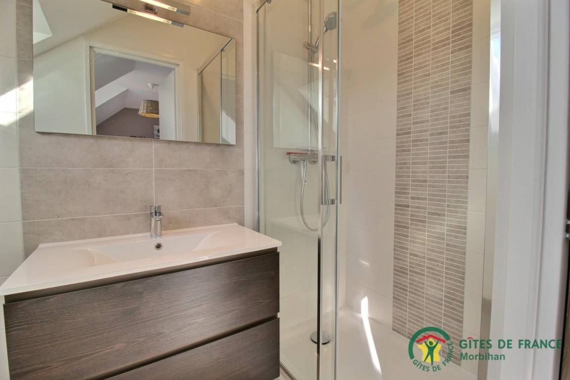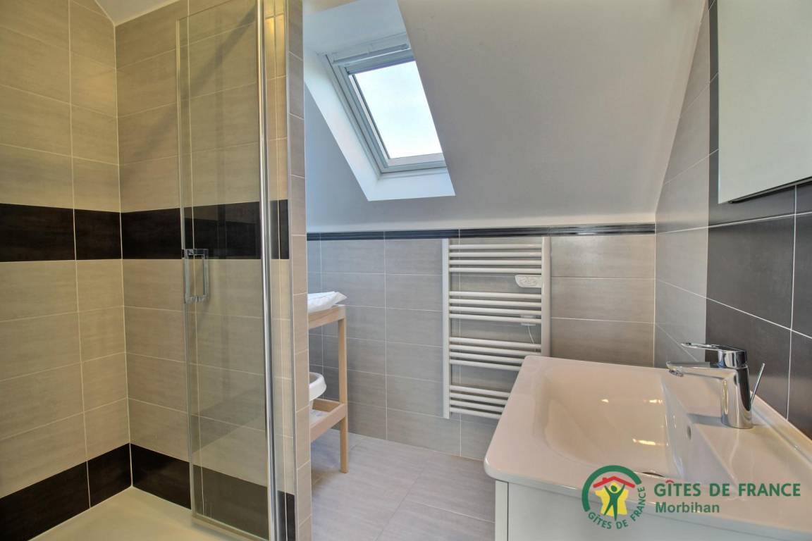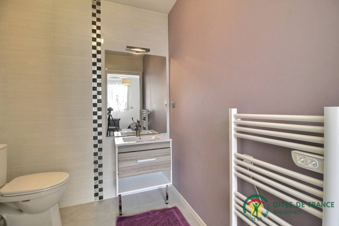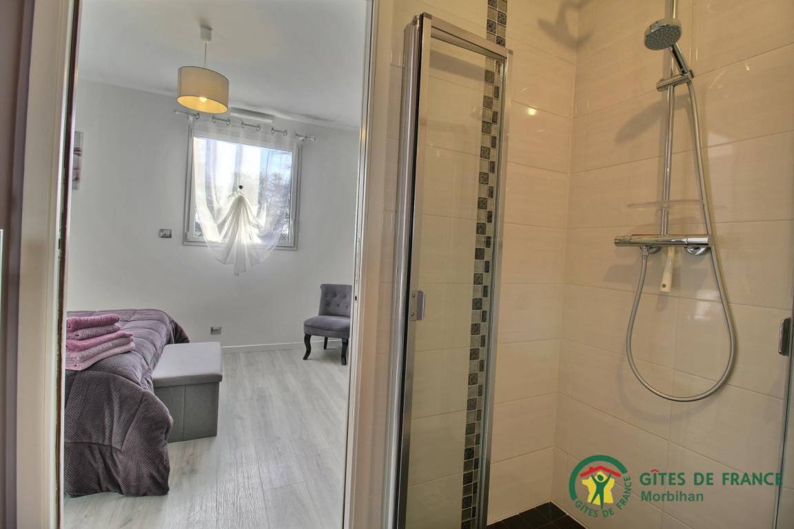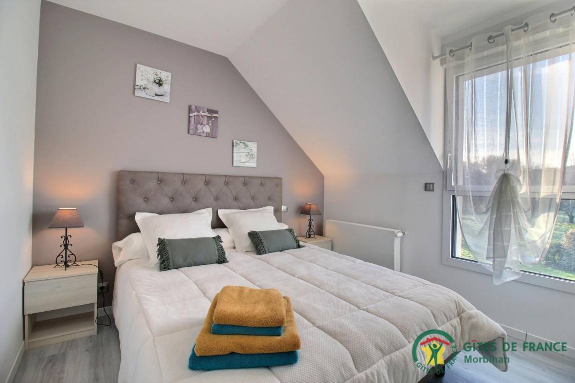 Entdecken Sie den gemütlichen Badeort Guidel im Süd-Morbihan. Das Ferienhaus, ideal gelegen, ist nur 6 km vom Meer entfernt: Badespaß, Wassersport, Segeln, Angeln… Die lebendige Stadt Lorient ist 10 Min vom Haus entfernt: Häfen, Museen, Geschäfte. Schönes und modern gebautes Ferienhaus mit viel Komfort, Licht und Raum. Hier fühlt man sich so richtig wohl, gemütliches Ambiente und gepflegtes Dekor. Im EG: Wohnbereich mit Küche/Wohnzimmer, WC, 2 Zi. mit eigenem Bad mit Dusche/WC, eines mit 1 Bett 160, das andere mit 1 Bett 160 und 1 Bett 90, Waschküche. Im 1. Stock: 3 Zi. mit eigenem Bad mit Dusche/WC (3 Betten 160). Terrasse, geschlossener Garten, Parkplatz. Ein Spazierweg geht direkt beim Ferienhaus weg. Kurtaxe: nach aktuellem Normaltarif/Nacht/Erwachsener, das ganze Jahr. Stromverbrauch: 56kw/h inklusive, bei darüber hinausgehendem Verbrauch Berechnung nach aktuellem Normaltarif. Ferienhaus in der Nähe der Vermieter und der Schnellstraße (300m).