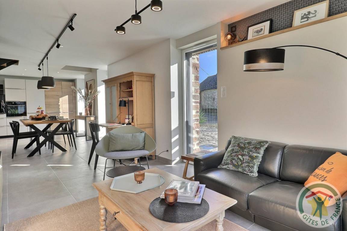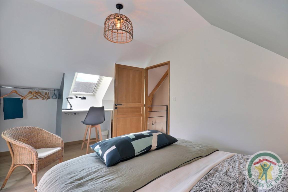 „Le gîte est équipé parfaitement, tout le nécessaire pour notre semaine de vacances. Les literies sont très confortables. Le Gîte se trouve dans un hameau très tranquille, lieu idéal pour se reposerGite neuf rénové avec des matériaux de qualité, c très beau et cocooning.“