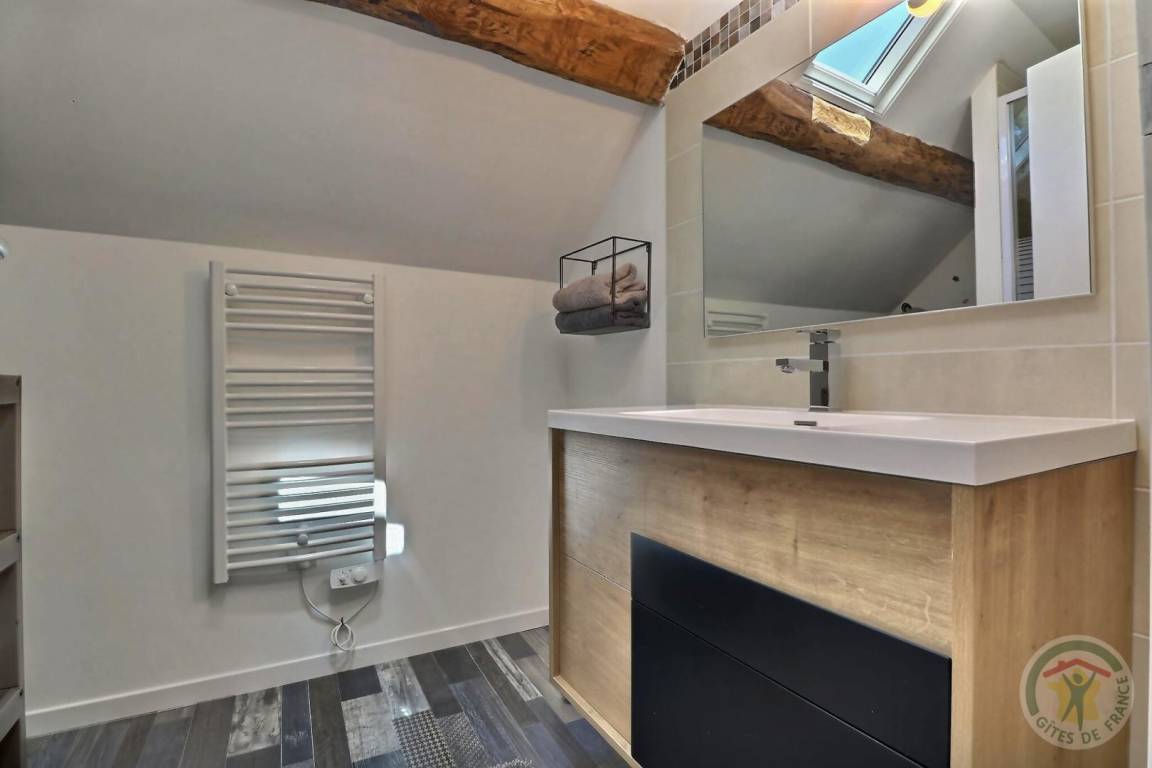„Nous avons passé un excellent week-end dans un joli cadre. Le gîte est spacieux et confortable. Quelques améliorations à prévoir: Dans la salle de bain du rez de chaussée il manque une tablette au dessus de la vasque pour poser les affaires ainsi que des portes manteaux la porte derrière la porte - l'aspirateur est un peu juste au niveau puissance pour aspirer toute la maison - il n'y avait pas de stores ni de rideaux dans la cuisine et le soleil était gênant au moment des repas). Nous recommandons ce gîte qui reste d'un excellent rapport qualité/prix.“